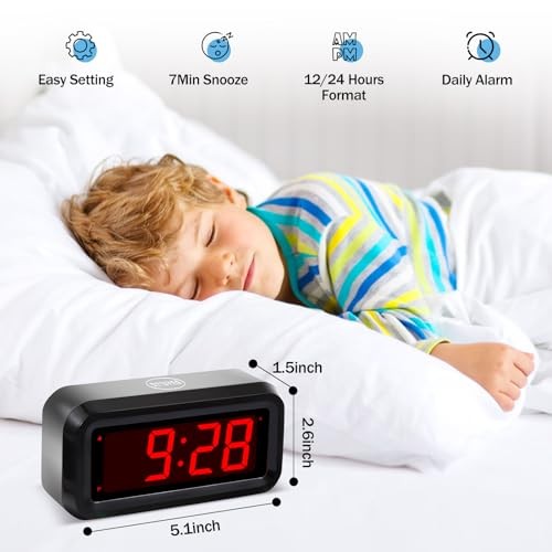 Return Policy Fast Delivery Trusted seller Digital Alarm Clock Battery Operated with LED Display for Bedrooms, Long Battery Life for 12 Months, 3 Brightness Adjustable, 12/24 Hour, Snooze, Black Case with Red Digits Product Description Alarm Clock Battery Operated - This alarm clock is powered by 4pcs AA batteries which can support the digital clock to work for more than 1 year. It is battery operated only, no usb ports, so you can put anyw that you like. Alarm Clocks for Bedrooms - This alarm clock is with 3 brightness levels, you can choose the suitable brightness for you.With the Night-Mode, it will dim automatically during 8:00pm-6:00am, so you won't feel too dazzling in the room. Digital Clock with LED Display - Unlike other digital clock, this LED digital clock is supported by batteries only, no need to plug by adapter cord, very convenient. It also has two display modes switchable :12/24hr mode. Desk Clock or Besides Clock - The clock size is 5.1x1.5x2.6 inches, portable and muted. You can use it as a desk clock or besides alarm clock, or take it out as a travel clock. Easy to Operate, with Snooze Function - The clock comes with a manual and it is easy to operate. The "Snooze" button is on top, touch it to stop alarm and 7 minutes later it goes off again until 3 times. Shipping Returns Payment Shipping Shipping is FREE to all addresses other than APO/PO boxes in the lower 48 states. All our stock ships from US-based warehouses. Shipped via USPS or UPS (depending on location and package weight) Unless stated otherwise, all orders will ship within 24-72 hours of your payment being processed. Check our feedback to see the great reviews of FAST shipping we offer. Returns Seller does not accept returns Payment We currently accept payment via eBay managed payments only. Once payment is cleared, we will dispatch your shipment within 1-3 business days. Please refer to the "Shipping" tab for more information regarding shipping speed to your destination.