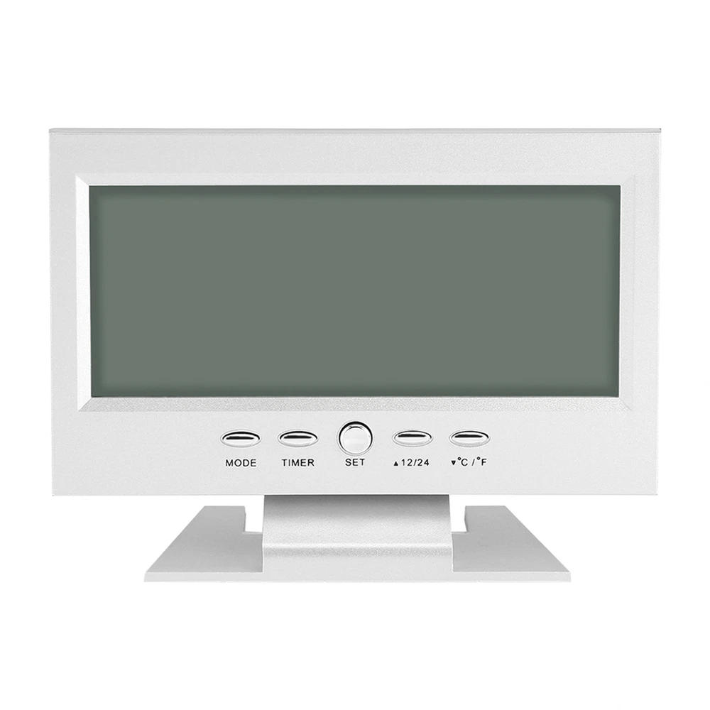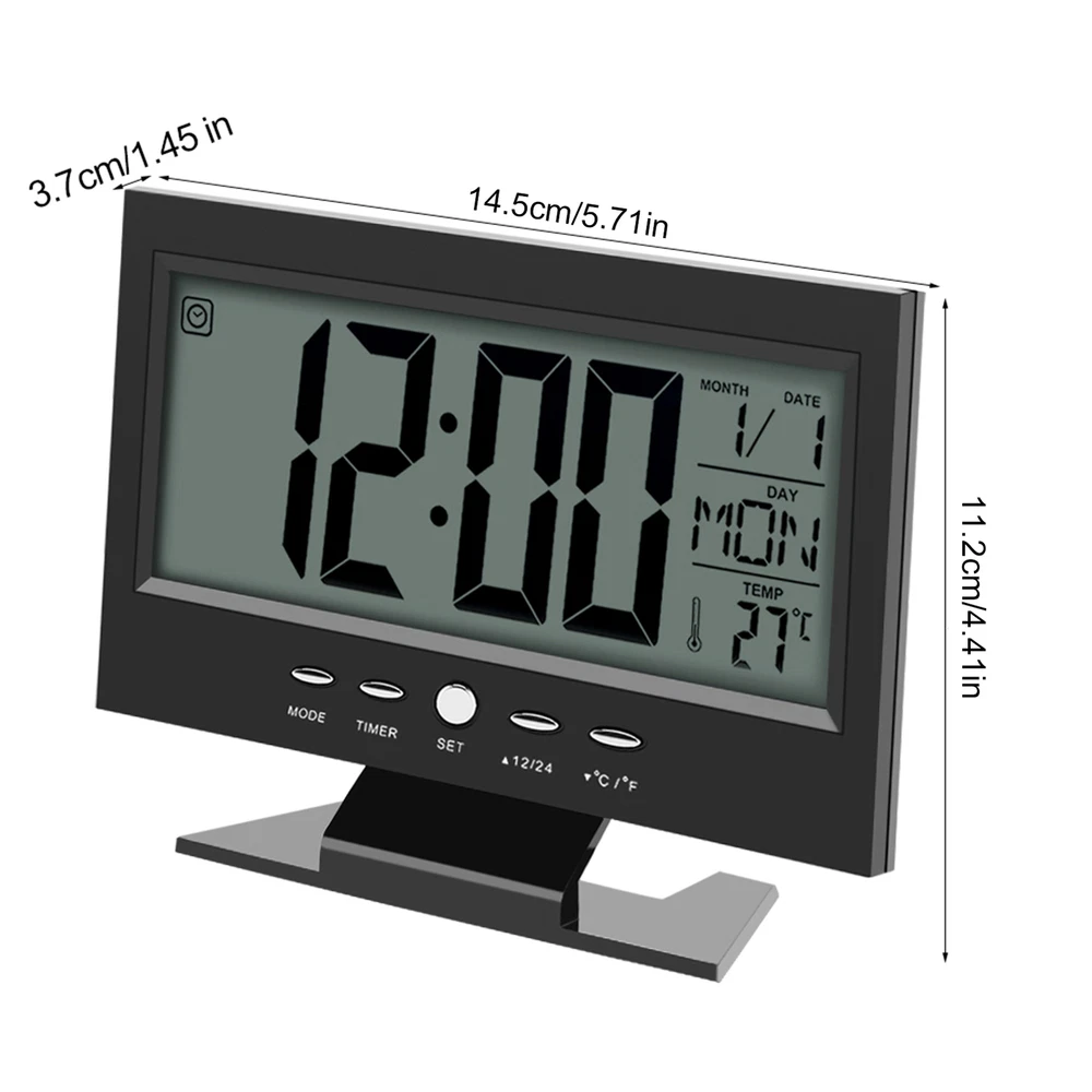 Feature: 1. Brand new and high quality multi‑functional electric clock with alarm and snooze function 2. Sound sensor light up function 3. Large LCD display will simultaneous display of date, time and week, and time can be shifted between 12:00 and 24:00 4. Real time display the temperature. °C and °F change freely for easy reading 5. Easy to use and place on the table or desk with the support bracket Specification: Features: Brand new and high quality multi-functional electric clock with alarm and snooze function. Sound sensor light up function. Large LCD display will simultaneous display of date, time and week, and time can be shifted between 12:00 and 24:00. Real time display the temperature. °C and °F change freely for easy reading. Easy to use and place on the table or desk with the support bracket. Specifications: Condition: Brand New Type: Clock Material: ABS Appearance: Rectangle Display Type: LCD Display Type: Number Display: Date, Time, Week, Temperature Battery: 2 * AAA Batteries(not included) Size: Approx. 14.5 x 11.2cm / 5.71 x 4.41'' Package included: 1 * Electric Clock Note: Please note that the new type and old type of this product will be sent randomly, and make sure you will not mind before ordering.