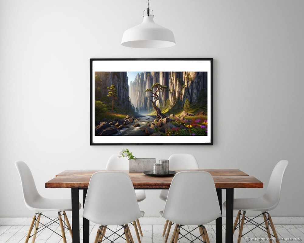 This stunning digital landscape captures the beauty of mountains and trees in a gorge with rich, oil-painting textures. The high-resolution PNG file looks amazing as a desktop wallpaper or printed decor. The AI-enhanced details give it a lifelike yet artistic feel, perfect for adding nature’s serenity to any space. Quick delivery and great quality—definitely worth it for digital art lovers!