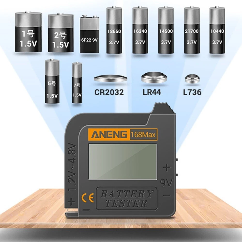 Digital Battery Tester for Detecting Power Levels in Batteries DESCRIPTION Faeture: *9V battery detection area: When measuring a 9V battery, it is necessary to for align the positive and negative poles on the right side of the tester for detection * No need to install batteries: It can detect battery power without using batteries, which is very convenient and easy to use *Push and pull handle up and down: easy to push and pull up and down, easy to operate, and can be extended up to 90mm * Small size: smooth feel, comfortable and smooth lines, ergonomic *LCD display: the screen display is clear without parallax *Insulated plastic shell: ABS insulating plastic shell, hard and not easy to break *Measurement of various battery types: No. 1 battery, No. 2 battery, lithium battery, 18 650, 16340, 14500, 21700, 10440, No. 7 battery, No. 5 battery, 9V battery, for CR2032 button battery, LR44 button battery, L736 button battery Specification: Product Name: Battery Tester Product model: 168MAX Measuring range: 1.2V~4.8V/9V battery No. 1 1.5V battery: √ No. 2 1.5V battery: √ No. 5 (AA) 1.5V battery: √ No. 7 (AAA) 1.5V battery: √ LR44/1.5V button battery: √ for CR2032 3V button battery: √ 6F22 9v battery: √ 16340 3.7V lithium battery: √ 10440 3.7V lithium battery: √ 18 650 3.7V lithium battery: √ 14500 3.7V lithium battery: √ 21700 3.7V lithium battery: √ Material: ABS insulating plastic shell Battery: no need to install battery Size: 52.6mm/23.4mm/53.9mm Display: digital display screen Weight: 29.2g Packing list: 1*Battery Tester Note: 1. The real color of the item may be slightly different from the pictures shown on website caused by many factors such as brightness of your monitor and light brightness. 2. Please allow slight manual measurement deviation for the data. POLICES Shipping Payment WARRANTY We only ship to confirmed ebay Order addresses. Please comfirm that your Order address is in line with your shipping address. Please kindly note that the combined shipping is not provided because the shipping fee is calculated by weight. Also, the each additional item means exactly the the same color and size. It takes about 7-15 working days to Canada; about 10-30 working days to other countries. Transit time may be a little delayed because of the bad weather and customs inspection. If you do not receive your item within 30 working days since payment finished, please contact us immediately for further assistance. Payment must be completed within 5 days. If you have any problems about payment, please contact us via ebay message. We strive for 100% customer satisfaction! Positive Feedback is very important to us. If you have any questions, please feel free to contact us via "Ask seller a question" . We will reply your email within 24 working hours.