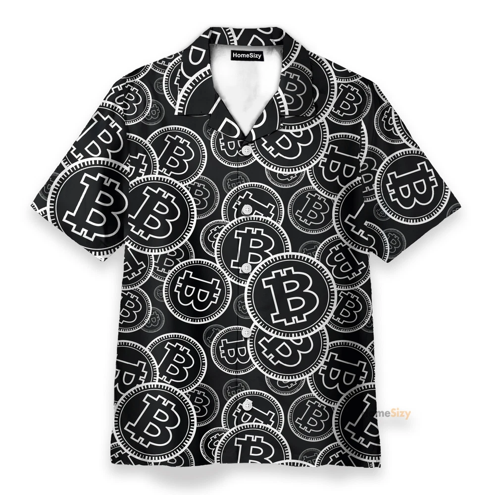 Digital Bitcoin Crypto Mens Buttons Up Shirts Hawaiian Shirt Beach Shorts