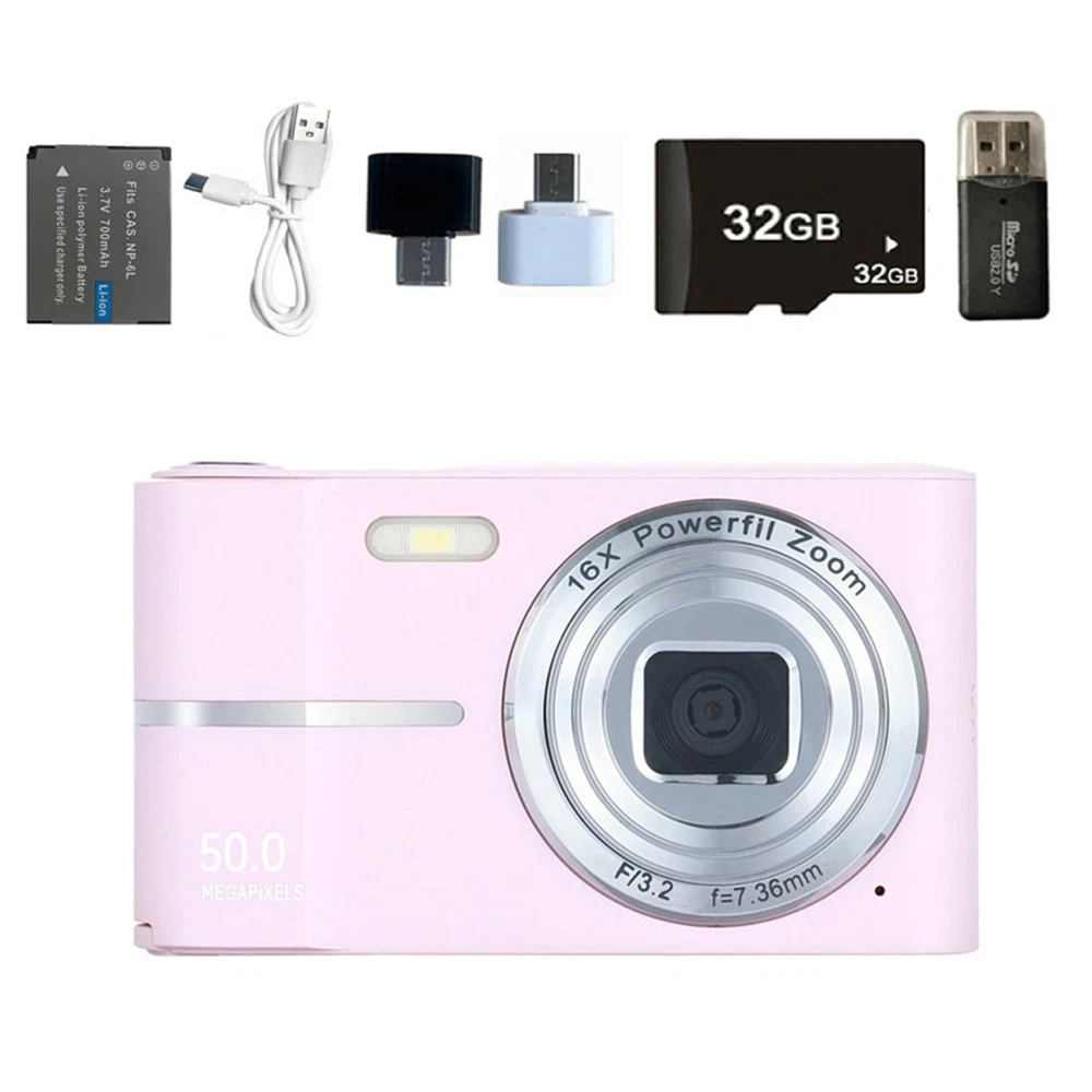 Digital Camera FHD 4K 50MP with 32GB Card 16X Zoom Anti Shake Compact Portable Small Cameras for Photography Point and Shoot Camera Gift for Student Teen Beginner (Pink) Description 50MP with 32GB Card 16X Zoom Anti Shake Compact Portable Small Cameras Features: Designed for Camera Beginner, teens, this point-and-shoot digital camera requires no intricate setup. With features like self-timer, continuous shooting, time-lapse, automatic recognition and various filters and scene modes etc. This digital camera fhd lets you unleash your creativity and take photos that stand out. Ideal for nurturing people's interest in photography and crafting delightful moments with family and friends. With 4K FHD video resolution and 50 Megapixels photo pixels, this compact digital camera 4k ensures high-quality image clarity and captures unforgettable moments. The point and shoot camera is equipped with an enlarged 2.4 inch HD display screen, which is convenient for taking photos and watching videos. A 32GB memory card is included to record the beautiful moments around you at any time. No need to remove the battery for charging; simply use the included USB-C charging cable to charge your compact digital camera anytime, anywhere. With its long-lasting, high-capacity battery, this small digital camera allows you to shoot all day without worrying about running out of power. Its pocket-sized, lightweight design ensures it's always ready to accompany you on your travels or daily adventures.You can also set automatic shutdown to save more power when you don't need to use it, Special mini-size design to easily handheld, this point and shoot camera is small and lightweight, fits in Teen's hands perfectly. Comes with a lanyard hang, it's portable for them to carry and move, and compact for travel and camp. The clear simple settings and features of the small portable digital camera make it easy for them to figure out and use themself. Use the provided USB-C cable to swiftly download pictures and videos to your computer. Alternatively, you can utilize an card reader to transfer pictures and videos from the camera's card to your phone for convenient sharing on social media.Whether it's Beginner's first camera or a thoughtful surprise for a best friend, it's an excellent choice. Ideal for gifting on holidays like Christmas and Thanksgiving, as well as for birthdays, graduations, and Valentine's Day. Package list:Digital camera, 32G SD card, lanyard, storage bag, Instruction manual, converter, cable, Card Reader Product Details: Compatible Mountings: Micro Four Thirds Aspect Ratio: 1.33:1 Photo Sensor Technology: CMOS Supported File Format: MP4 Image Stabilization: 光学 Optical Zoom: 4 x Expanded ISO Minimum: 100 Brand: Vlmazlm Model Name: digital cameras Maximum Webcam Image Resolution: 4096 MP Optical Zoom: 4 x Lens Type: Macro Battery Average Life: 2 Hours Photo Sensor Resolution: 4096 MP Sensor Type: CMOS Viewfinder: Optical Expanded ISO Maximum: 25600 Expanded ISO Minimum: 100 Battery Cell Type: Lithium Image stabilization: 光学 Battery Weight: 30 Grams Color: Pink Battery Capacity: 600 Amp Hours Skill Level: Novice Compatible Mountings: Micro Four Thirds Video Resolution: 1080p Number of Batteries: 1 9V batteries required. (included) Battery Type: Lithium Ion Photo Sensor Size: 1/3.2-inch Form Factor: Compact Flash Memory Type: SD Connectivity Technology: USB, Micro USB Built-In Media: Camera Body & Accessories Age Range Description: Youth Model Name: digital cameras Remote Included: No Model Number: 01215 Brand: Vlmazlm Are Batteries Included: Yes Display Type: LCD Screen Size: 2.4 Inches Auto Focus Technology: Contrast Detection Aspect Ratio: 1.33:1 Effective Still Resolution: 48 MP File Format: MP4 Handling We will ship all orders within 3 business days of payment. Delivery We do not ship outside of the Continental US. Feedback We take our reputation seriously, we buy and sell online, so we understand the value of trust. If you are unsatisfied with your order, please contact us and we will work with you to resolve it to your satisfaction.