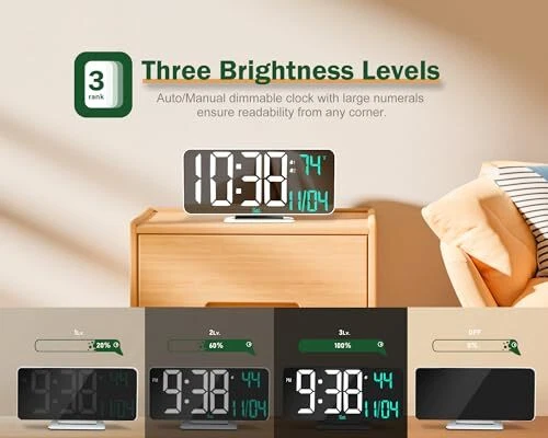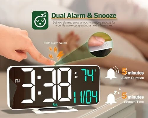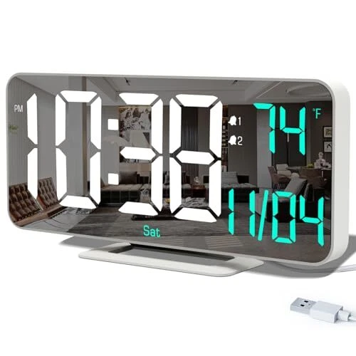 Menu 1. We require immediate payment. 2. We currently accept payment via eBay managed payments only. 3. Once payment is cleared, we will dispatch your shipment within 1-3 business days. Please refer to the "Shipping" tab for more information regarding shipping speed to your destination. Digital Clocks for Living Room, 6.7in Small LED Clock Desk, Table Clock, Alarm Clock for Bedroom Big Numbers Display Temp/Time/Date/Week/Seconds, USB Powered Clock(White) Product description Multiple Display On a Phone-sized Screen: View time, date, day of week, seconds or indoor temp (°C/°F) on the 6.7in LED clock. Plus, you can choose between a 12-hour or a 24-hour format. Adjustable Brightness: Set brightness manually from OFF-HIGH-MEDIUM-LOW, or enable auto dimming to adjust based on surrounding light Easy To Read & Operate: Compact screen, large numbers for clear visibility across the room. Instructions printed on the back—no more worrying about missing manual! Set 2 Alarms, Tap to Snooze: Each alarm beeps for 5 minutes at 90dB. NOT for heavy sleepers. Mirror Surface: Doubles as a chic mirror and is easily cleaned with a simple wipe. USB-powered Clock with 4.9ft Cord: Plug into any USB charger with the included 4.9ft cable. Use a USB wall adapter or power bank (adapter NOT included). Day of Week Setting: Once you've got the "Year" and "Date" set up, the day will automatically update - no need for additional adjustments. PLEASE MESSAGE US IF YOU HAVE ANY OTHER QUESTIONS, AND MANY THANKS FOR READING ALL OF THIS. Copyright ©#. All Rights Reserved.