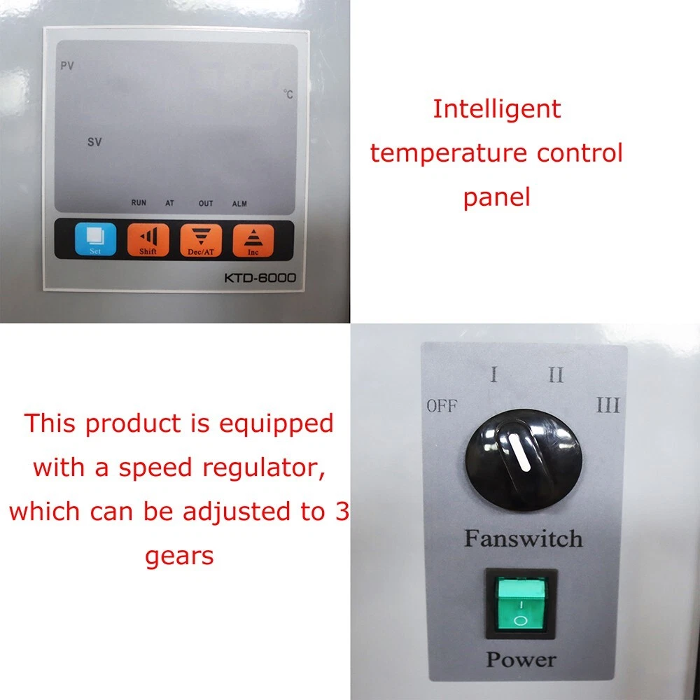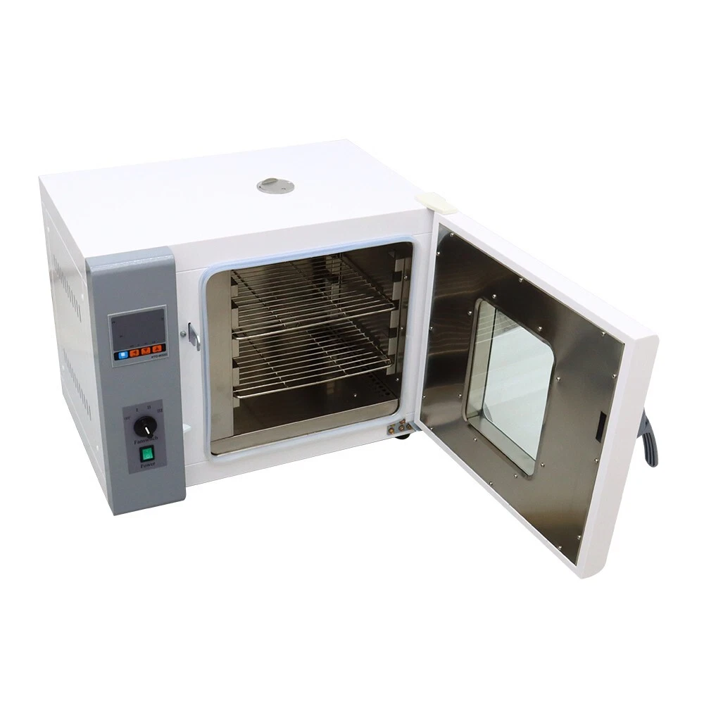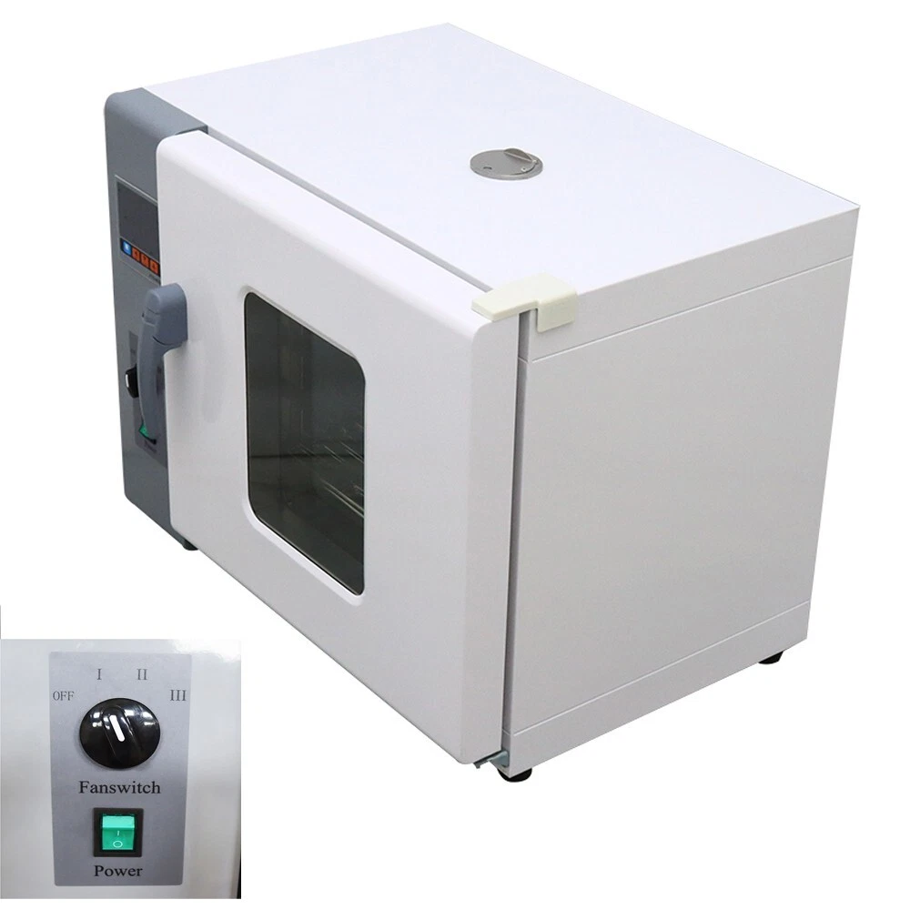 220V 101-0AB Digital Forced Air Convection Drying Oven This device is widely used in items drying ,baking and heat treatment in the laboratory of industrial and mining enterprises, colleges and universities, scientific research institutes, Medicine and health care. Machines with two color panels are shipped randomly. Product Features: 1. The shell is made of high quality cold-rolled steel plate, surface electrostatic spraying. 2. Inner chamber is made of stainless steel or galvanized steel plate. 3. A is galvanized steel inner chamber, AB is stainless steel inner chamber. 4. Intelligent digital display PID temperature controller, with the functions of timing, overtemperature alarm instruction, temperature deviation correction, control temperature self-tuning. 5. Large double layer toughened glass window is convenient to observe the changes of contents in the box. 6. New type synthetic silicone seal, beautiful shape, can run high temperature for long period of time. 7. Hot air circulation system adopts the double air duct circulation of high temperature resistant and low noise fan, ensuring that the fan service life is longer and the temperature in the box is more uniform. 8. The device is equipped with an independent fan switch that can be turn on or off as needed. Technical Parameters: Model 101-0AB Voltage AC220V Tem.range RT+10-250℃(the highest 300℃) Tem.fluctuation ±1℃ Working ambient tem. 5-40℃ Power 1.0KW Inner chamber size (D×W×H) 35*34*35cm/13.78*13.4*13.78nch Exterior size (D×W×H) 65*45*52cm/25.6*17.7*20.47inch Shelf load 15KG * Working environment :Temperature 5-40℃,Relative humidity <90% 。 Item included:(160110) 220V 101-0AB Digital Forced Air Convection Drying Oven On Sep 22, 2023 at 21:24:07 PDT, seller added the following information: