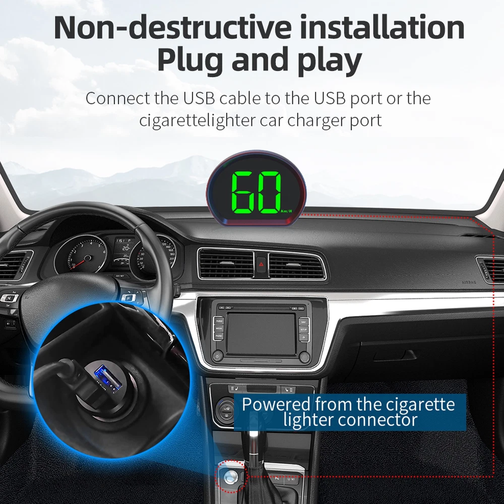 Feature: 1. Large Screen and Vehicle Speed Display: With a large screen design, making it convenient for drivers to view. Real time display of the current speed of the vehicle, helping drivers to grasp the driving speed and improve driving safety. High-definition LED, clearly visible day and night. 2. USB Power Supply 0 Power Consumption: When the vehicle is turned off, the power is completely cut off, and there is no power theft. 3. GPS+Beidou Dual Chipsets: Using 10Hz high refresh rate GPS + Beidou dual-mode chip. The refresh rate is 10 frames per second, the speed of the vehicle is fast, and there is no delay. 4. Accurate Speed Display: Add the speed calibration function, which can be adjusted to be consistent with the display of the car dashboard. 5. Non-destructive Installation: Connect the USB cable to the USB port or the cigarettelighter car charger port. Specification: Features: Large Screen and Vehicle Speed Display: With a large screen design, making it convenient for drivers to view. Real time display of the current speed of the vehicle, helping drivers to grasp the driving speed and improve driving safety. High-definition LED, clearly visible day and night. USB Power Supply 0 Power Consumption: When the vehicle is turned off, the power is completely cut off, and there is no power theft. GPS+Beidou Dual Chipsets: Using 10Hz high refresh rate GPS + Beidou dual-mode chip. The refresh rate is 10 frames per second, the speed of the vehicle is fast, and there is no delay. Accurate Speed Display: Add the speed calibration function, which can be adjusted to be consistent with the display of the car dashboard. Non-destructive Installation: Connect the USB cable to the USB port or the cigarettelighter car charger port. Specifications: Item: Heads-Up Display Material: ABS Main Color: Black Unit: KM/H or MPH Optional Display the Color of Word: White and Green Optional Screen Size: 3inch Product Size: 8.5 * 5 * 2cm Package Size: 10 * 7.5 * 7.5cm Package Weight: 125g Package List: 1* Heads-Up Display 1* USB Cable 1* Non-slip Mat 1* User Manual Special reminder: The operating voltage of this product is 5V, and a voltage higher than 5V is prohibited. Installation Method: 1. Insert the USB screenshot into the car USB interface and connect to the host. 2. Hide the extra lines to avoid affecting the driving. 3.Put the host engine in the center console to avoid affecting the driving place. Correct Use: Move the car to the open road after electrification 1. Display interface- -indicating the search satellite. 2. The display interface shows 0km, which indicates that the satellite can be used normally matters need attention. When the satellite is not connected, try putting the product outside the window and wait for 5-10 minutes Package List: Package List: 1* Heads-Up Display 1* USB Cable 1* Non-slip Mat 1* User Manual