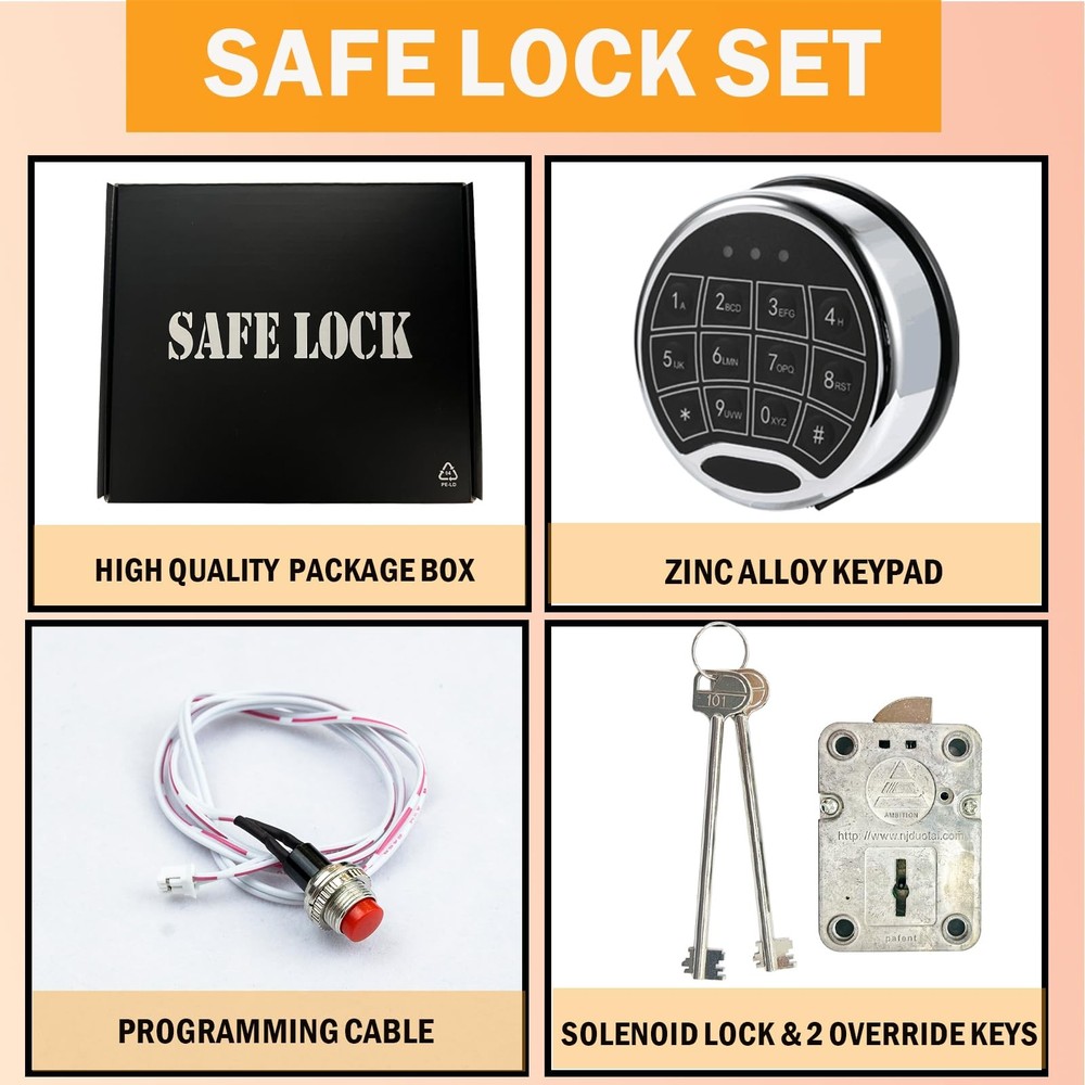 【Notice】If you don't know how to recognise a swing bolt is facing, how to install a full set of locks, or how to set or update a password, you can go and watch the related videos on the homepage, which has four videos that can help you. Our swing bolt is facing left, please be careful not to buy the wrong one, if you need a right-handed swing bolt you can buy another one. 【Gun Safe Lock】2 users and 1 manager code safe lock for more security & large families to use. Chrome zinc alloy keypad and swing bolt gun safe lock that is equipped with time delay mode lasting 60 minutes. 【High Quality】Strong vault door and large safe box electronic safe lock for physical protection, enhanced durability and extremely strong dummy codes to prevent forced entry and lockout mode. 【Easy to Use】Very easy to use and allows manual reset: a needle or a paperclip needed in case you lose the code including low voltage signal. 【Application】Digital keypad security swing bolt lock replacement for all kinds of home safes and lock boxes, gun safes, pistol safes, hotel safes, cabinet safes, coin-operated safes and more. THIS LOCK IS FOR THE LEFT HAND SIDE.