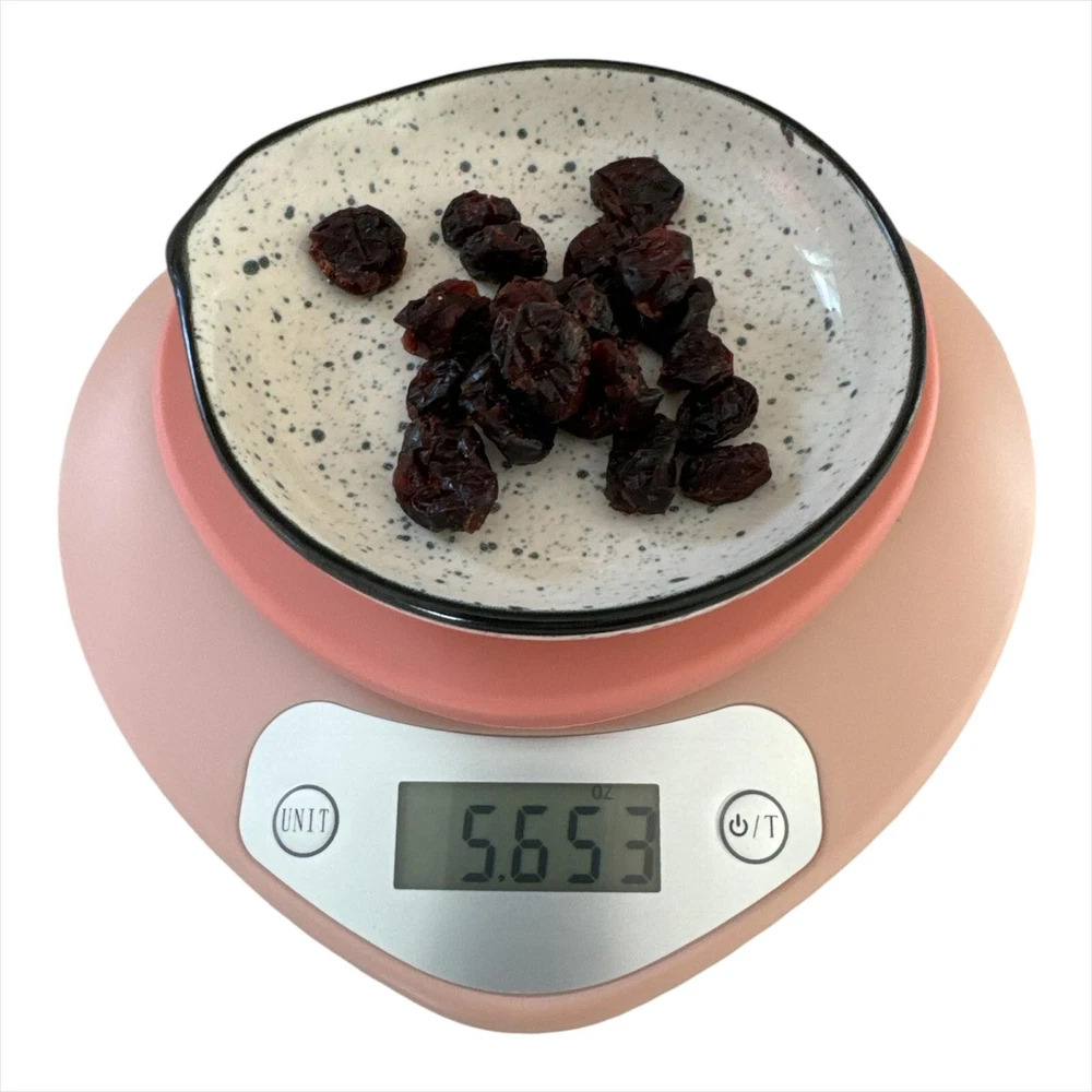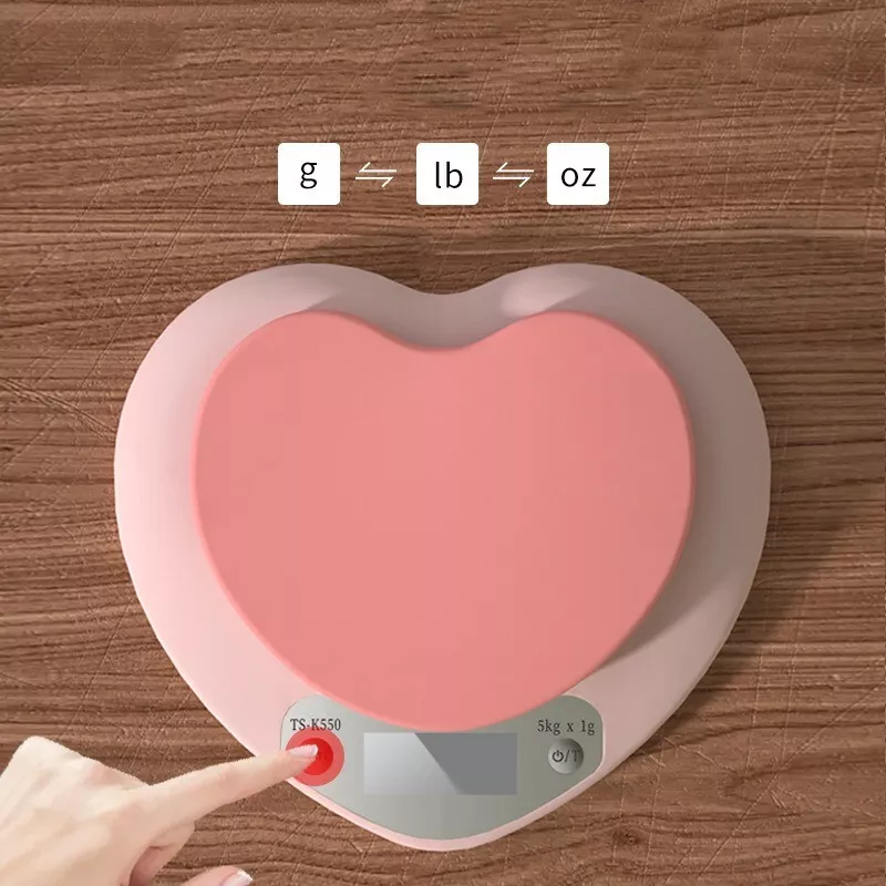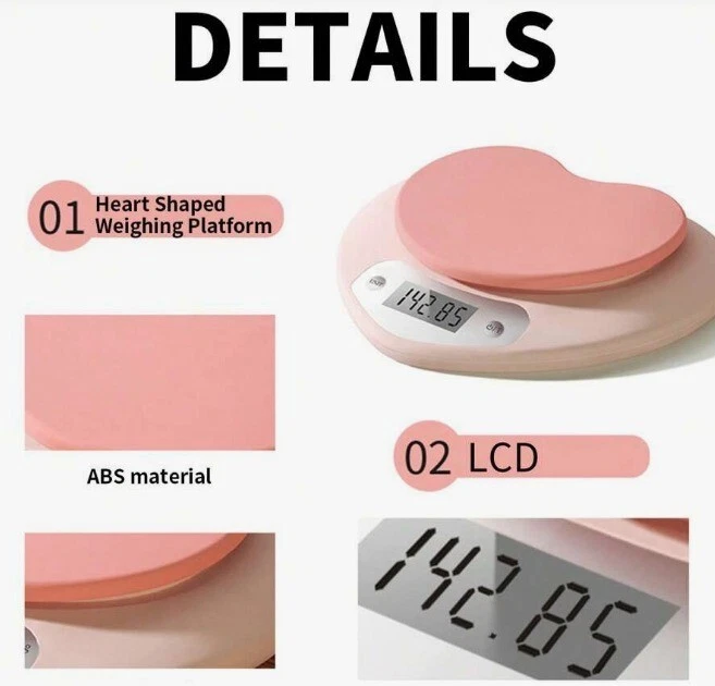 Digital Kitchen Food Scale, Light Weight High Precision Scale LCD Display, 11 lbs (5kg) Capacity, 0.01 oz.(0.1g), Units (G, lbs., Oz, Fluid Oz, ML), Pink Heart Shape. High precision strain gauge system to measure from 0.1 g (0.01 oz) with toggle to gram, pounds / ounces. Can be used for variety of cooking, baking or other measurement where high precision is crucial. The heart shape and pink color make it an attractive design to add to the kitchen. The scale is light weight and requires two AAA batteries to operate (included). It is so easy to operate (on/off) or to switch between the units (g/oz). Recommend to place the ingredient on a small container to keep the surface clean. Auto shut off feature. ABS plastic platform and a smooth surface provide a durable and long life for the scale. It is easy to wipe clean the surface for storing. It is a perfect gift for a romantic partner or newly married couple.