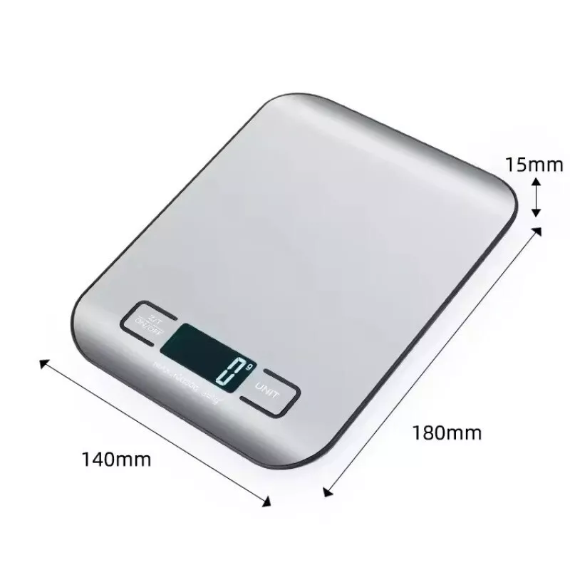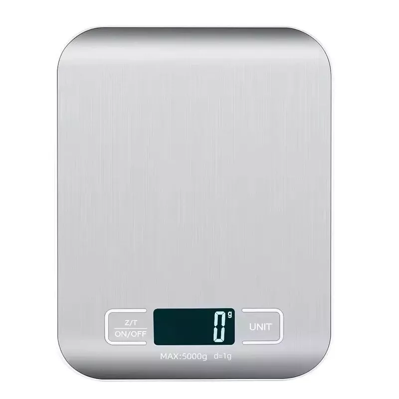 The Digital Kitchen Scale has a capacity of 5kg with 1g accuracy, featuring an LED display for easy reading. It is suitable for measuring food and jewelry, made of stainless steel and plastic materials. The scale operates on batteries and is designed in China. This kitchen scale is a useful tool for accurately measuring ingredients in the kitchen. Features: 1. Suitable for daily product weighing, kitchen baking weighing, etc. 2. Simple operation, convenient weighing, no need to spend a lot of time 3. Energy saving, low energy consumption, and long-lasting durability 4. The bottom rubber base is stable and not easy to flip over 5. High definition LCD backlight display screen, can freely switch between 6 units Specifications: Type: LCD digital kitchen scale Materials: stainless steel, plastic Color: Silver Capacity: 5 kilograms (11 pounds) Precision: 1g Error range: +-3g Power supply: 1.5V x 2 AAA batteries (excluding batteries) Display: LCD with blue backlight The package includes: 1 x Digital Kitchen Scale 1 x User Manual Please note: There are two layers of blue protective film on the product. Please remove the protective film, as the blue protective film is not the color of the product Attention: 1. The received product has a layer of blue protective film on its surface. If you don't like it, you can peel it off 2. After use, please place it in a safe place in a timely manner to avoid damage and affect the accuracy of weighing 3. Do not weigh items that are too heavy