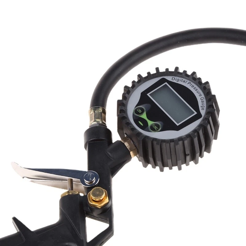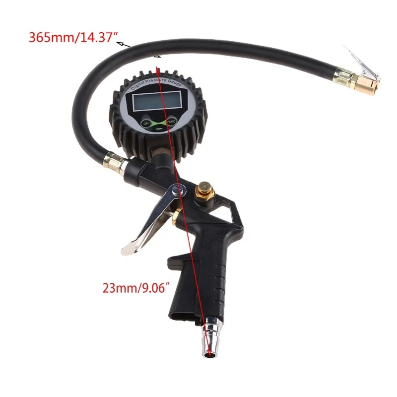 Multifunctional Digital Car Truck Tire Pressure Inflator Gauge Dial Meter Vehicle Tester Tyre Inflation Tool Main Features: Multifunctional tire inflator includes a grip locking chuck and tire pressure gauge. LCD screen display, you can clearly read the number even at night. Made of alloy material, durable and practical. Can with pump, dust purging for the vehicle engine. Clip-on design enables hands-free chuck use. The -bleeder will adjust the pressure when the tire pressure is too high. 33cm rubber hose, can reach around corners, convenient to use. Suitable for motorcycle, automobile and so on. Measuring 0 0 16 bar. Powered by: 2 x AAA ( not included No retail package Note: When you measure the tire pressure, the tire should be in the cooling condition. Product Size: See the picture Package Contents: 1 x Car Digital Tire Pressure Inflator Gauge