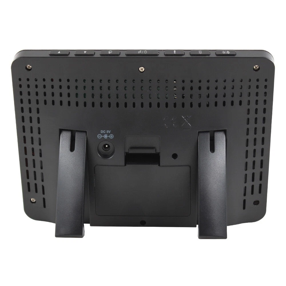 Product Description: Features : Multifunctional Weather Station : Adopt large LCD color screen to display rich information: Indoor/outdoor temperature and humidity, customized temperature (hi/lo) alert, time/date/week, dual alarm clock/snooze(extra 5-minute sleep), vivid weather forecast, mold risk and comfort level. RF Function: Comes with an outdoor transmitter, which adopts advanced RF sensor technology to collect data precisely and transmit quickly to indoor receiver. 60 meters transmission range in an open area. Waterproof level IPX4. Tendency Chart & Weather Icon Display: The weather station can show the tendency and record the maximum and minimum values of indoor & outdoor temperature, forecast weather in 12 hours and provides 6 weather icons display. Dual Alarm & Snooze: Supports two alarm clocks setting and snooze function with the snooze time programmable from 5 to 60 mins, practical and useful. Mold Risk & Frost Point Alarm: Able to detect mold risk and display in 3 levels; when the temperature is lower than the preset value, the clock will prompt an alarm. Practical and Aesthetic: Simple design can fit any home decor, function-rich clock serves multiple purposes. Specifications: Material: ABS C olor: Black Power supply(Clock): 2 * 1.5V AA batteries(Not included) / USB P ower supply(Transmitter): 2 * 1.5V AA batteries(Not included) F unction: Time / Calendar / Temperature / Humidity / Dual Alarm Clock / Snooze / Backlight / RF / Weather forecast / Mold Risk Indicator / Frost Point Alarm Indoor Temperature range: 0℃ ~ 50℃(32℉~122℉) Outdoor Temperature range: -20℃~70℃ (-4℉~+158℉) Temperature resolution: 0.1 ℃ & ℉ Indoor Humidity Range: 20% ~ 95%RH Outdoor Humidity Range: 20% ~ 95%RH Humidity resolution: 1%RH Max. RF Channel: 3 7 Week Language: English, German, Italian, French, Spanish, Dutch, Danish Alarm Clock: 2 Snooze: 5~60 mins I ndoor Comfort level display: 3 levels Indoor Mold Risk display: 3 levels 6 Kinds Weather Display: Sunny/Cloudy/Slightly Cloudy/Rainy/Stormy/Snowy Alert: Over Temperature and Frost Alarm Temperature Record: Max./Min. Item Size: 16*11.6*3cm / 6.29 * 4.56 * 1.18in Item Weight: 216g / 7.61oz Package Weight: 413g / 14.56oz Package Size: 17*6.5*12.8cm / 6.69 * 2.55 * 5.03in Package Include: 1 * Clock 1 * Transmitter 1 * USB cord 1 * User Manual (E nglish)