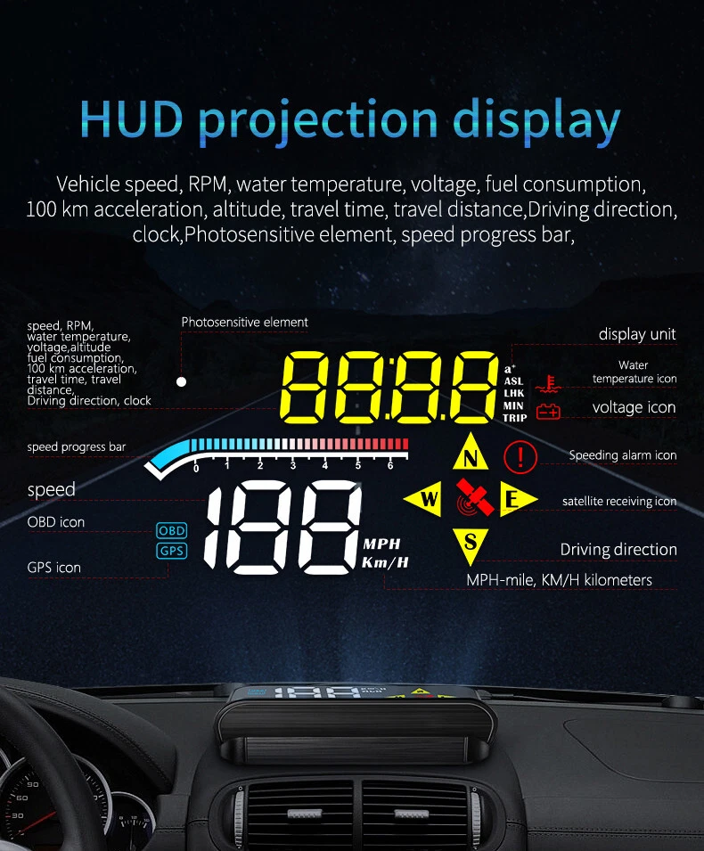 Compact HUD GPS Speedometer for Safer Driving with Auto Display