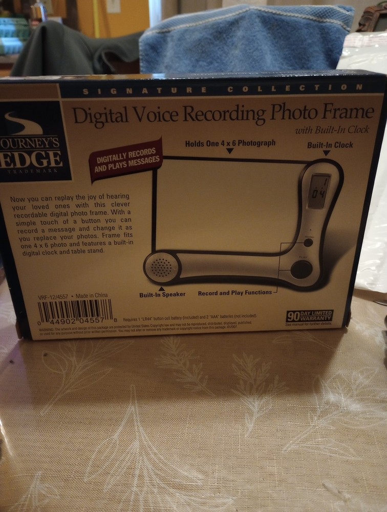 This is from journey's edge trademark boys digital voice recording photo frame with built-in clock