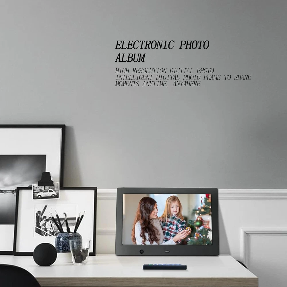 BRAND NEW IN BOX About this item 【Stay Together with Family】 : Order a FOTOMOON digital picture frame with usb port, preload it with photos and add a message - this is sure to be a heart-warming surprise. Invite your loved ones to share your special moments anywhere, anytime with our digital picture frame usb. Suitable as a gift for birthdays, weddings, graduations, family gatherings and many other occasions. 【10-Inch HD IPS DISPLAY, EASY SETUP】:1280*800 resolution brings you a full range of stunning visual experience, IPS technology can display your memories in full HD. Humanized interface design, easy to set up and use just by moving your fingers! Suitable for both young and old, especially for the elderly who like simple operation. 【REMOTE CONTROL AND MULTI-WINDOW DISPLAY】:Digital picture frame comes with a smart wireless remote control with a 5M range, making it easier for you to watch your favorite pictures or videos and listen to your favorite music. The digital photo frame has up to 4 windows for viewing multiple photos at the same time. 【STYLISH AND MINIMALIST DESIGN】: The digital picture frame requires no touch, no WiFi, just plug in the power, insert a USB flash drive or SD card, and the digital photo frame slideshow will display photos. The digital photo frame supports image formats such as JPG, JPEG, WEBP and PNG, as well as video formats such as MP4, which is especially suitable for the elderly. 【PERFECT GIFT FOR FAMILY】It is perfect gift for Thanksgiving, Christmas, Birthdays, weddings, graduations, Mother’s Day, Father’s Day and many other occasions.EASY TO USE - The simple main menu ensures that the elderly and children will use it. No need to download or register any APP, just turn on the digital picture frame and insert USB driver or SD card, then you can enjoy photos slideshow and videos Product Description FREE SHIPPING: Option is standard/default and will be sent most economical way, smaller items may or may not include tracking depending on size of item, Majority of items will come with tracking. For faster shipping with guaranteed tracking please select Upgraded Shipping for a fee. INTERNATIONAL ORDERS: We will only ship to the address provided. NO EXCEPTIONS or your order will be cancelled. You are responsible for providing all accurate information and to be sure the product you are buying is allowed in your country. If there are any issues with your order/shipment due to customs returns. ALL SHIPPING AND HANDLING FEES ARE NOT AND WILL NOT BE REFUNDED. MISC-10"DigitalPhotoFrame