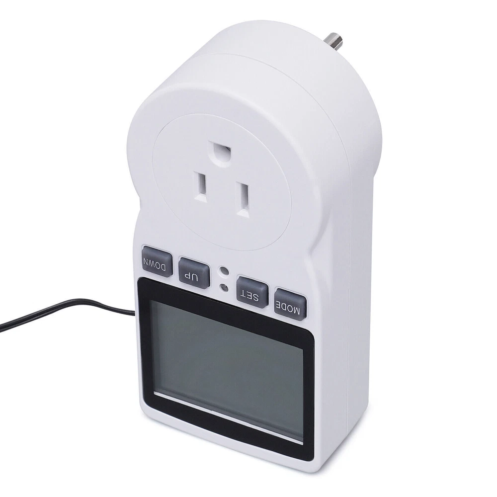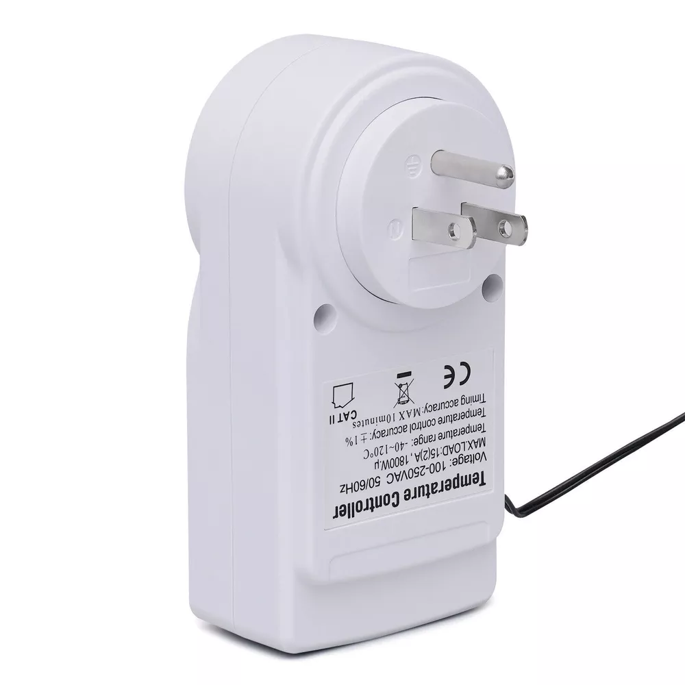 Have a nice day~ Description This Outlet Plug Temperature Controller Is Made of High-quality Flame Retardant Abs Material, Giving You More Peace of Mind. the Large Ultra-clear Led Screen Allows You to Feel the Temperature Change More Intuitively. It Has Various Functions Such As Detecting Temperature, Setting Temperature, and Timing, Which Is Ideal for Intelligent Temperature Control in Places Such As Carbon Crystal Heating, Aquaculture, Greenhouse Sheds, and Home Living. Key Features Necessary Supplies : This Plug Temperature Controller Can Detect Temperature, Set Temperature, and Have Other Functions. It Is Necessary for Intelligent Temperature Control in Places Such As Carbon Crystal Heating, Aquaculture, Greenhouse, and Home Living. One Screen with Three Displays : It Has a Screen with Three Displays, Showing the Real-time Measured Temperature, the Start Temperature, and the Stop Temperature. the Numbers Are Visible, so You Can Read Them Easily. Temperature Correction Function : When You Long-press the Mode Button to Power on, It Will Enter the Real-time Temperature Correction After 2 Seconds, Which Is Very Convenient and Worry-free. Screen Lock Protection : When You Press the Mode Key and the Setting Key at the Same Time for More than 3 Seconds, It Will Be Able to Screen Lock. This Way, Even If You Accidentally Press Other Keys, There Will Be No Trouble. Memory Function : When the Power Is off, It Will Automatically save All the Current Settings to Avoid the Trouble of Data Loss Due to some Accidental Power Loss. Easy to Use : It Comes with a Large Led Display and Four Buttons. and We Are Equipped with Detailed Instructions for Use, so You Can Easily Operate. Great Durability : It Is Made of High-quality Flame Retardant Abs Material, so It Is Not Only Good Quality but Also More Durable. Compact and Lightweight : the 5.51*3.07*2.36inch in Size and 0.331lbs in Weight Can Be Easily Carried and Used by You. Details Led Display: It Uses a Large Led Display, Which Can Display Data More Clearly and Minimize Damage to Your Eyes. Flame-retardant Shell: It Uses a Flame-retardant Abs Shell, so Even If the Temperature Is High Due to Long-term Use, It Will Not Cause Combustion. Two Temperature Displays : It Supports Both Celsius and Fahrenheit Displays. You Can Choose According to Your Needs. Application It Is Suitable for Intelligent Temperature Control in Places Such As Carbon Crystal Heating, Aquaculture, Greenhouse Sheds, and Home Living. Specification Material: Abs Color: White Rated Voltage: Ac100-250v, 50/60hz Rated Load: 15a 1800w Temperature Range: -40-120oc Temperature Error: ±1% Temperature Display Resolution: 0.1oc Timing Error: Max. 10 Minutes Package Size: 14.5*8.3*6.6cm/5.71*3.27*2.6inch Product Size: 7.8*6*14cm/3.07*2.36*5.51inch Gross Weight: 0.2kg/0.441lbs Net Weight: 0.15kg/0.331lbs Package Included 1*Outlet Plug Temperature Controller 1*English Manual Notes 1. Please Note That the Total Resistive Load of the Electrical Power Connected to This Product Must Not Exceed the Power, Otherwise the Product May Be Damaged. Serious Cases May Cause a Fire. 2. This Product Has No Waterproof Function, Only Used in Dry Indoor Conditions. 3. Do Not Let Children Touch It and Keep It Away from the Fire Source. Do Not Insert Foreign Objects Other than the Plug into the Jack. 4. Please Insert the Plug Completely into the Jack. 5. Do Not Disassemble the Product Without Permission. Please Call a Professional When You Need to Repair It. 6. Please Read the User Manual Carefully Before Use and Pay Special Attention to the Safety Precautions Included. 7. Please Allow a Slight Color Difference Due to Shooting Light, and 1-3cm Error Due to Manual Measurement, Please Make Sure You Don't Mind Before Ordering. Payment Delivery details Terms of sales About us Contact us Payment We accept ebay payment 。 Fees such as import duties, taxes are not included in the item price or shipping costs. These charges are the buyer's responsibility. Delivery details Shipping: 2-9 working days to: USA Terms of sales We maintain high standards of excellence and strive for hundred percent customer satisfaction. Feedback is very important to us. We hope that you contact us immediately before you give neutral or negative feedback, so that we can address your concerns. It is impossible to address issues if we do not know about them! About us Your satis faction is our ultimate goal. We work hard to earn your trust and future business. Our certified technicians have tested each item before shipping. The unit comes with 1 year limited warranty on all manufacturing defects. a) If you receive a defective item, you may return it or ask for a discount. Please contact us within 14 days after you receive the package. b) What you returned must be intact and in its original packaging as re? u. Customer is responsible for shipping costs of the returned item. c) We will cover the cost of shipping back t with the shipping rate indicated in the registration page. We will send you a new unit or refund the full payment you paid. Thank you. Contact us Business Hour Business Hour: Monday To Friday: 8:30 AM to 5:00 PM (Beijing China time) Due to time zones, our reply to your questions may not be immediately. But within above working time, we will reply your email within 24 hours. If it's non-workdays, please kindly be patient and wait till Monday. Please contact us with ebay message. Please feel free to contact us if you have any questions. Monday To Friday: 8:30 AM to 5:00 PM (Beijing China time) Due to time zones, our reply to your questions may not be immediately. But within above working time, we will reply your email within 24 hours. If it's non-workdays, please kindly be patient and wait till Monday. Please contact us with ebay message. Please feel free to contact us if you have any questions. On Feb 18, 2025 at 18:33:12 PST, seller added the following information: