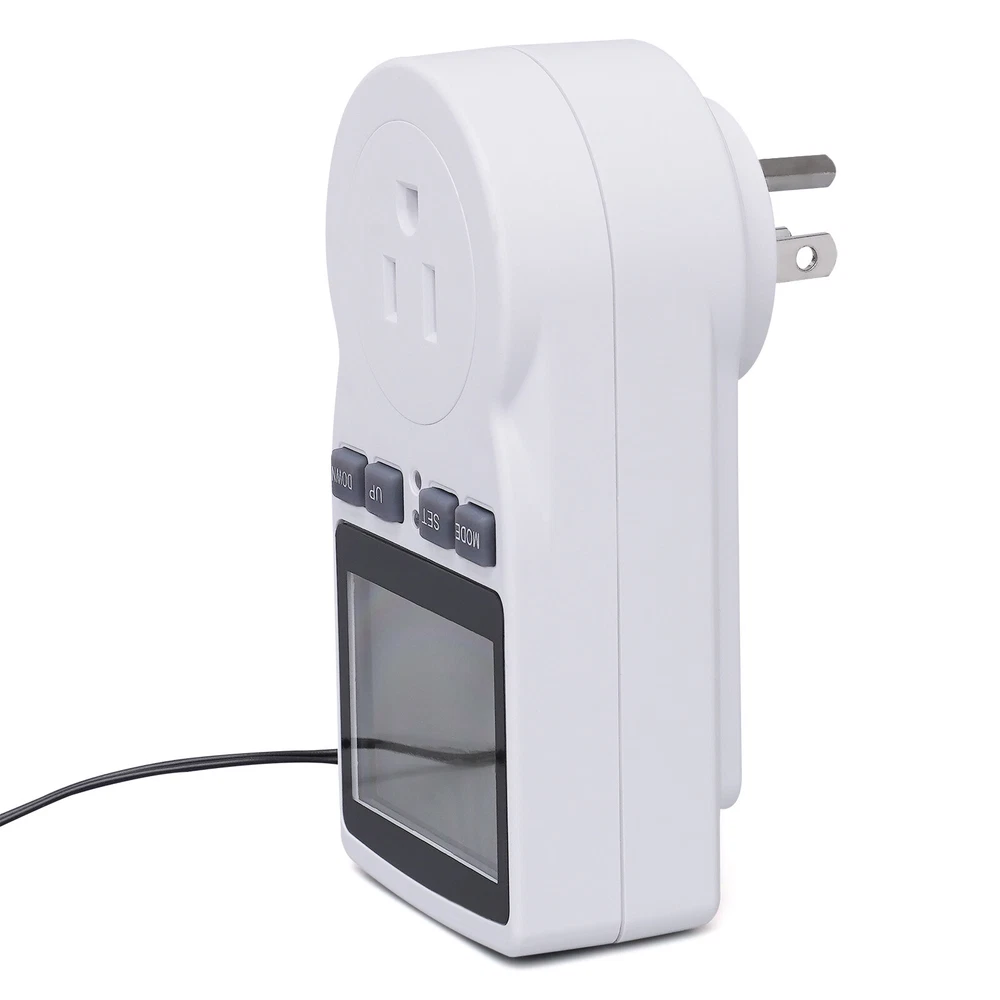 Specification Material: ABS Color: White Rated Voltage: AC100-250v, 50/60Hz Rated Load: 15A 1800W Temperature Range: -40-120oC Temperature Error: ±1% Temperature Display Resolution: 0.1oC Timing Error: Max. 10 Minutes Package Size: 14.5*8.3*6.6cm/5.71*3.27*2.6inch Product Size: 7.8*6*14cm/3.07*2.36*5.51inch Gross Weight: 0.2kg/0.441lbs Net Weight: 0.15kg/0.331lbs Package Included 1*Outlet Plug Temperature Controller 1*English Manual Digital Plug in Thermostat Timer Switch Socket Temperature Controller Switch USA Description Description This Outlet Plug Temperature Controller Is Made of High-quality Flame Retardant Abs Material, Giving You More Peace of Mind. the Large Ultra-clear Led Screen Allows You to Feel the Temperature Change More Intuitively. It Has Various Functions Such As Detecting Temperature, Setting Temperature, and Timing, Which Is Ideal for Intelligent Temperature Control in Places Such As Carbon Crystal Heating, Aquaculture, Greenhouse Sheds, and Home Living. Key Features Necessary Supplies : This Plug Temperature Controller Can Detect Temperature, Set Temperature, and Have Other Functions. It Is Necessary for Intelligent Temperature Control in Places Such As Carbon Crystal Heating, Aquaculture, Greenhouse, and Home Living. One Screen with Three Displays : It Has a Screen with Three Displays, Showing the Real-time Measured Temperature, the Start Temperature, and the Stop Temperature. the Numbers Are Visible, so You Can Read Them Easily. Temperature Correction Function : When You Long-press the Mode Button to Power on, It Will Enter the Real-time Temperature Correction After 2 Seconds, Which Is Very Convenient and Worry-free. Screen Lock Protection : When You Press the Mode Key and the Setting Key at the Same Time for More than 3 Seconds, It Will Be Able to Screen Lock. This Way, Even If You Accidentally Press Other Keys, There Will Be No Trouble. Memory Function : When the Power Is off, It Will Automatically save All the Current Settings to Avoid the Trouble of Data Loss Due to some Accidental Power Loss. Easy to Use : It Comes with a Large Led Display and Four Buttons. and We Are Equipped with Detailed Instructions for Use, so You Can Easily Operate. Great Durability : It Is Made of High-quality Flame Retardant Abs Material, so It Is Not Only Good Quality but Also More Durable. Compact and Lightweight : the 5.51*3.07*2.36inch in Size and 0.331lbs in Weight Can Be Easily Carried and Used by You. Details Led Display: It Uses a Large Led Display, Which Can Display Data More Clearly and Minimize Damage to Your Eyes. Flame-retardant Shell: It Uses a Flame-retardant Abs Shell, so Even If the Temperature Is High Due to Long-term Use, It Will Not Cause Combustion. Two Temperature Displays : It Supports Both Celsius and Fahrenheit Displays. You Can Choose According to Your Needs. Application It Is Suitable for Intelligent Temperature Control in Places Such As Carbon Crystal Heating, Aquaculture, Greenhouse Sheds, and Home Living. Specification Material: Abs Color: White Rated Voltage: Ac100-250v, 50/60hz Rated Load: 15a 1800w Temperature Range: -40-120oc Temperature Error: ±1% Temperature Display Resolution: 0.1oc Timing Error: Max. 10 Minutes Package Size: 14.5*8.3*6.6cm/5.71*3.27*2.6inch Product Size: 7.8*6*14cm/3.07*2.36*5.51inch Gross Weight: 0.2kg/0.441lbs Net Weight: 0.15kg/0.331lbs Package Included 1*Outlet Plug Temperature Controller 1*English Manual Notes 1. Please Note That the Total Resistive Load of the Electrical Power Connected to This Product Must Not Exceed the Power, Otherwise the Product May Be Damaged. Serious Cases May Cause a Fire. 2. This Product Has No Waterproof Function, Only Used in Dry Indoor Conditions. 3. Do Not Let Children Touch It and Keep It Away from the Fire Source. Do Not Insert Foreign Objects Other than the Plug into the Jack. 4. Please Insert the Plug Completely into the Jack. 5. Do Not Disassemble the Product Without Permission. Please Call a Professional When You Need to Repair It. 6. Please Read the User Manual Carefully Before Use and Pay Special Attention to the Safety Precautions Included. 7. Please Allow a Slight Color Difference Due to Shooting Light, and 1-3cm Error Due to Manual Measurement, Please Make Sure You Don't Mind Before Ordering. Payment Delivery details Terms of sales About us Contact us Payment We accept ebay payment 。 Fees such as import duties, taxes are not included in the item price or shipping costs. These charges are the buyer's responsibility. Delivery details Shipping: 2-9 working days to: USA Terms of sales We maintain high standards of excellence and strive for hundred percent customer satisfaction. Feedback is very important to us. We hope that you contact us immediately before you give neutral or negative feedback, so that we can address your concerns. It is impossible to address issues if we do not know about them! About us Your satis faction is our ultimate goal. We work hard to earn your trust and future business. Our certified technicians have tested each item before shipping. The unit comes with 1 year limited warranty on all manufacturing defects. a) If you receive a defective item, you may return it or ask for a discount. Please contact us within 14 days after you receive the package. b) What you returned must be intact and in its original packaging as re? u. Customer is responsible for shipping costs of the returned item. c) We will cover the cost of shipping back t with the shipping rate indicated in the registration page. We will send you a new unit or refund the full payment you paid. Thank you. Contact us Business Hour Business Hour: Monday To Friday: 8:30 AM to 5:00 PM (Beijing China time) Due to time zones, our reply to your questions may not be immediately. But within above working time, we will reply your email within 24 hours. If it's non-workdays, please kindly be patient and wait till Monday. Please contact us with ebay message. Please feel free to contact us if you have any questions.