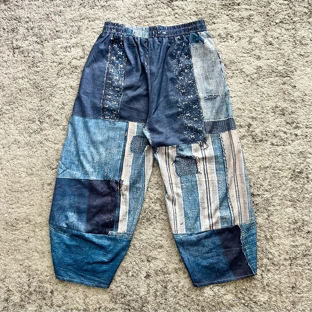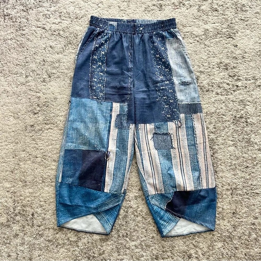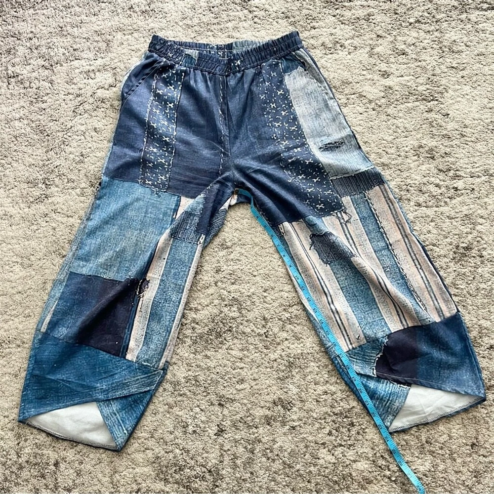 These lightweight yet edgy Digital Printed Denim Patchwork Lounge Pants feature a garterized waist for ultimate comfort. Perfect for casual outings or as a chic beach cover-up. -100% Polyester -Digital denim print and not denim material. -Size: Medium -Please see photos for approximate waist and inseam measurements -Featuring a garterized waist, these pants comfortably stretch to accommodate sizes beyond the listed waist measurement. -Pre-loved in excellent condition. -Pre-owned items have been sanitized and steamed. patchwork, boho, bohemian, summer, spring, beach, pool, travel, vacay, hippie, gypsy, flower child, concert, music festival, cottagecore, coastal, shabby chic #DigitalPrintedDenim #PatchworkPants #SummerFashion #GarterizedWaist #VersatilePants