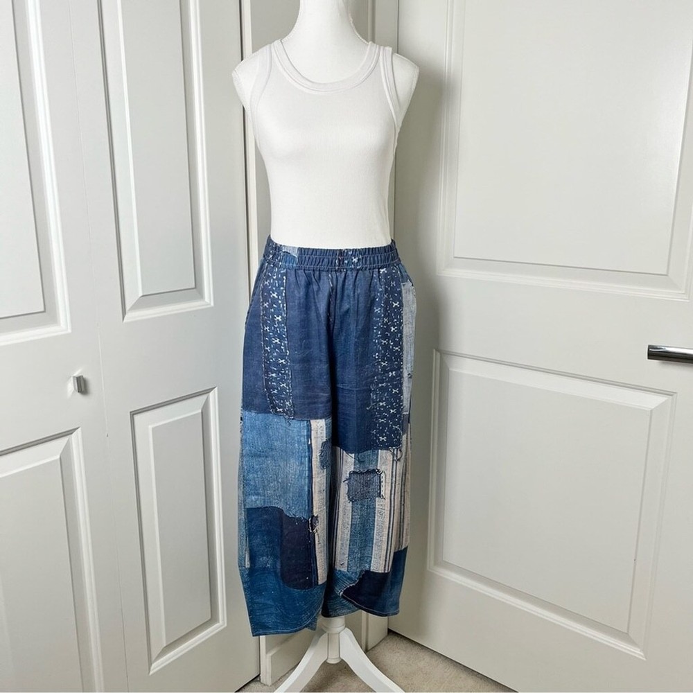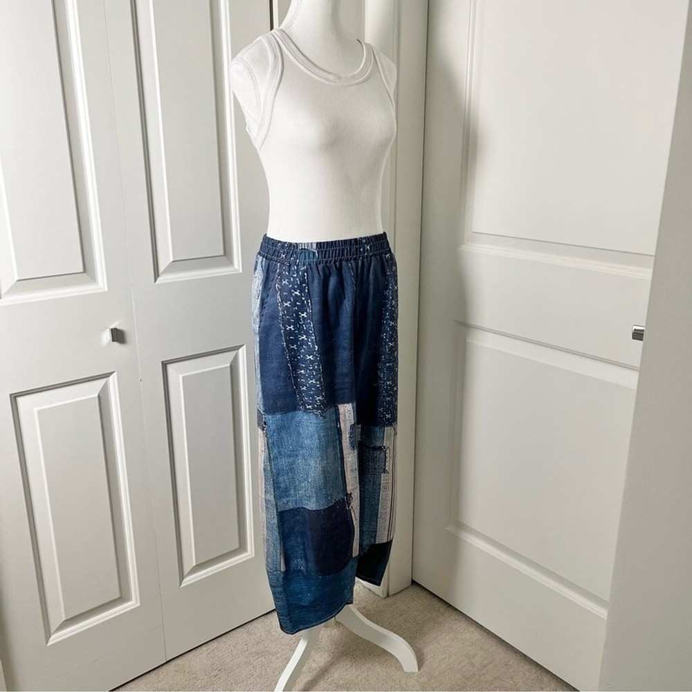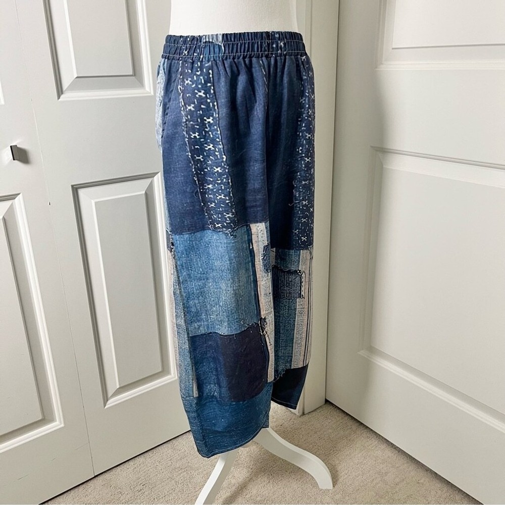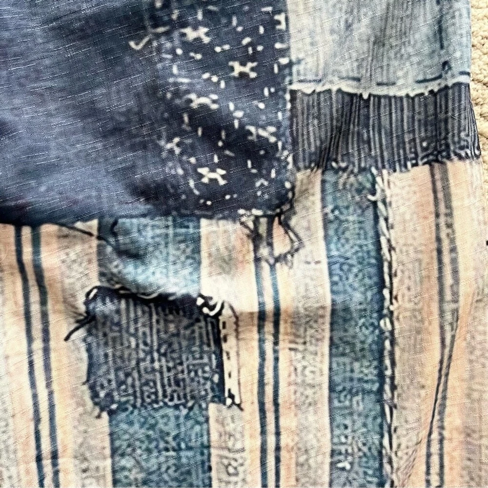 These lightweight yet edgy Digital Printed Denim Patchwork Lounge Pants feature a garterized waist for ultimate comfort. Perfect for casual outings or as a chic beach cover-up. -100% Polyester -Digital denim print and not denim material. -Size: Medium -Please see photos for approximate waist and inseam measurements -Featuring a garterized waist, these pants comfortably stretch to accommodate sizes beyond the listed waist measurement. -Pre-loved in excellent condition. -Pre-owned items have been sanitized and steamed. patchwork, boho, bohemian, summer, spring, beach, pool, travel, vacay, hippie, gypsy, flower child, concert, music festival, cottagecore, coastal, shabby chic #DigitalPrintedDenim #PatchworkPants #SummerFashion #GarterizedWaist #VersatilePants