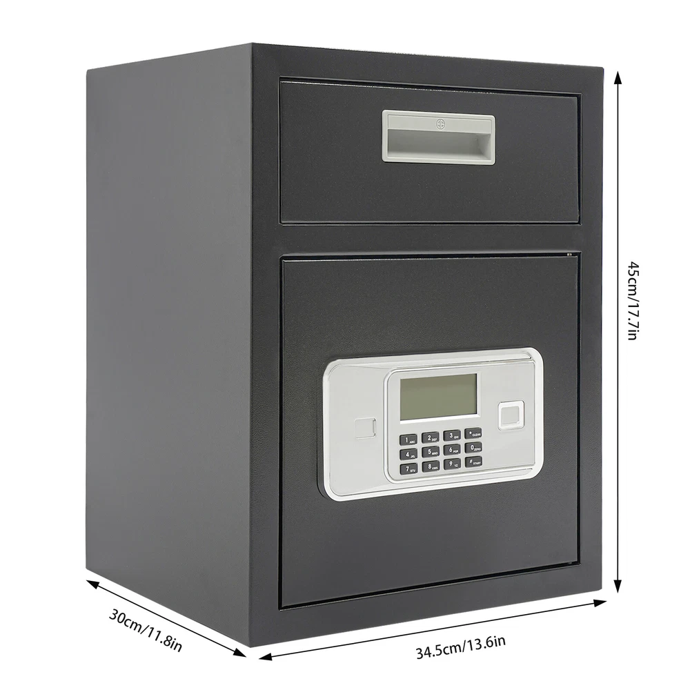 Digital Safe Box Deposit Safe with Drop Slot Passwords & Keys For Home Office Size:Large Color:Black UPC:Does not apply Material:Metal Item Depth:13.6" Suitable For:Valuables, Money Brand:Unbranded Type:Drop Slot Safe Lock Type:Combination Lock Mechanism:Keypad Item Height:17.7” Condition: New:New: A brand-new, unused, unopened, undamaged item in its original packaging (where packaging is ... Please Note:After you order, we will ship within 1 business day Item Width:11.8" Payment Delivery details Terms of sales About us Contact us Payment We accept ebay payment 。 Fees such as import duties, taxes are not included in the item price or shipping costs. These charges are the buyer's responsibility. Delivery details Shipping: 2-9 working days to: USA Terms of sales We maintain high standards of excellence and strive for hundred percent customer satisfaction. Feedback is very important to us. We hope that you contact us immediately before you give neutral or negative feedback, so that we can address your concerns. It is impossible to address issues if we do not know about them! About us Your satis faction is our ultimate goal. We work hard to earn your trust and future business. Our certified technicians have tested each item before shipping. The unit comes with 1 year limited warranty on all manufacturing defects. a) If you receive a defective item, you may return it or ask for a discount. Please contact us within 14 days after you receive the package. b) What you returned must be intact and in its original packaging as re? u. Customer is responsible for shipping costs of the returned item. c) We will cover the cost of shipping back t with the shipping rate indicated in the registration page. We will send you a new unit or refund the full payment you paid. Thank you. Contact us Business Hour Business Hour: Monday To Friday: 8:30 AM to 5:00 PM (Beijing China time) Due to time zones, our reply to your questions may not be immediately. But within above working time, we will reply your email within 24 hours. If it's non-workdays, please kindly be patient and wait till Monday. Please contact us with ebay message. Please feel free to contact us if you have any questions. Monday To Friday: 8:30 AM to 5:00 PM (Beijing China time) Due to time zones, our reply to your questions may not be immediately. But within above working time, we will reply your email within 24 hours. If it's non-workdays, please kindly be patient and wait till Monday. Please contact us with ebay message. Please feel free to contact us if you have any questions. Brand Unbranded Type Drop Slot Safe Color Black UPC Does not apply Suitable For Valuables, Money Material Metal Item Height 17.7” Item Width 11.8" Size Large Please Note After you order,we will ship within 1 business day Item Depth 13.6" Lock Type Combination Lock Mechanism Keypad