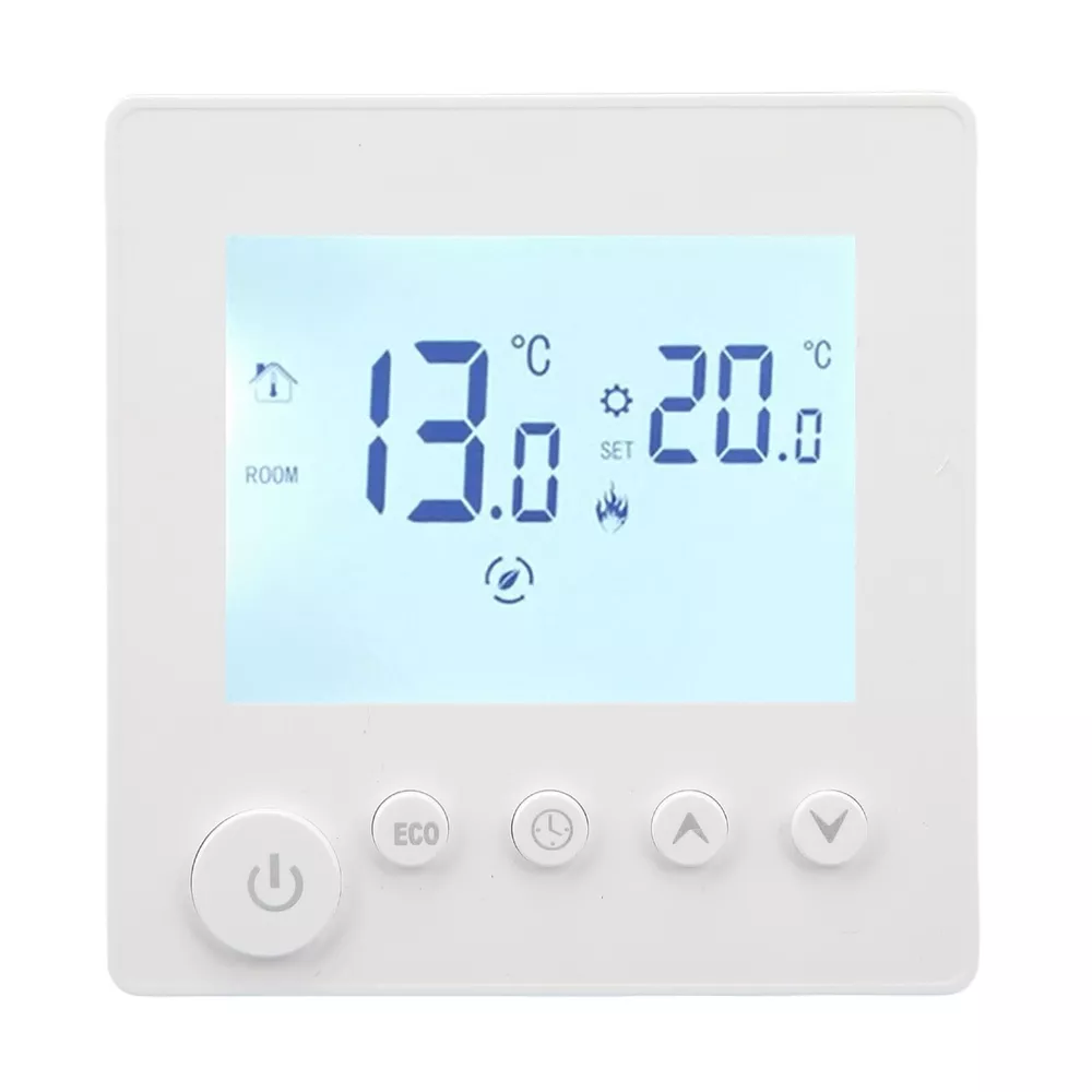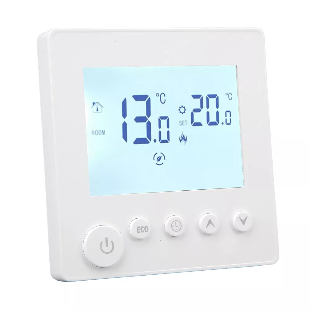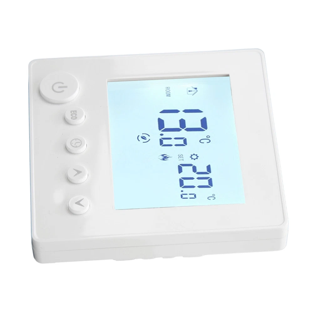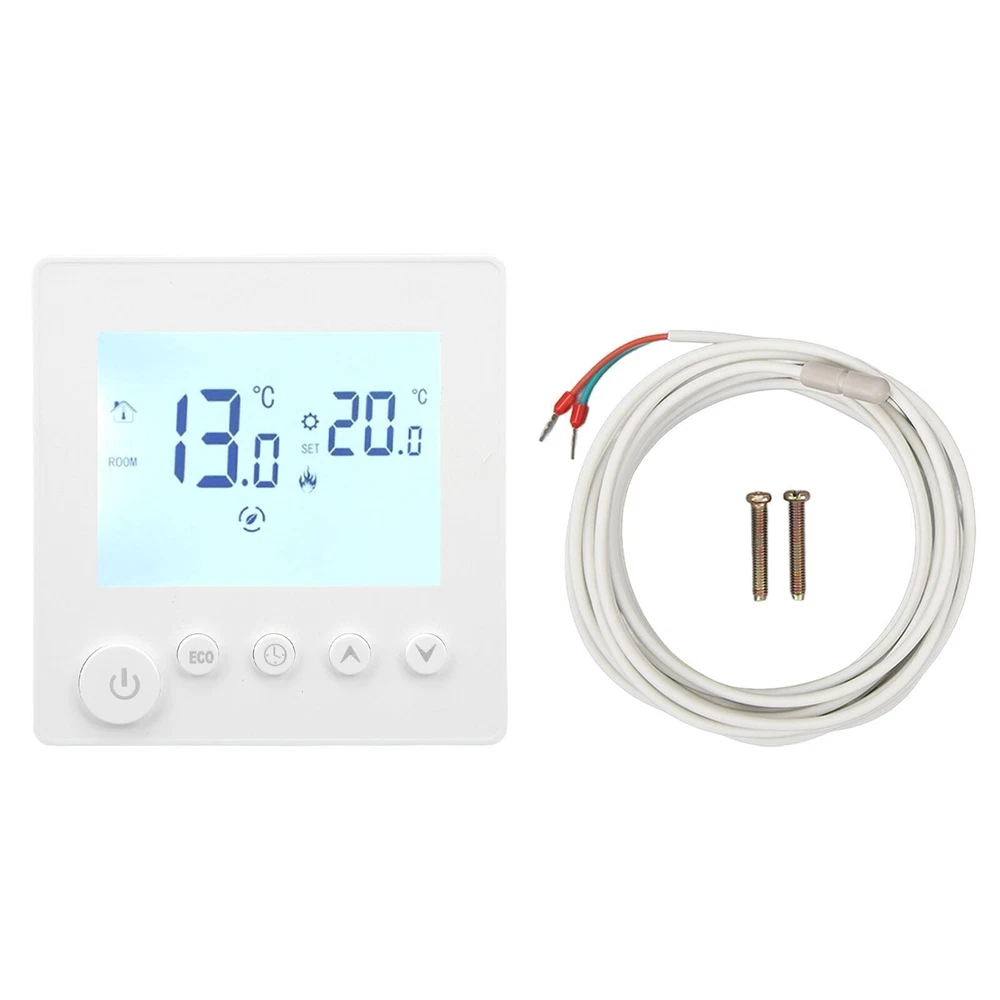 Feature: 1. Remote Control: Through stable RF frequency connection, the home thermostat with LCD display supports remote control over the heating system. 2. Easier Heating: Equipped with NTC sensor, the thermostat controller ensures highly accurate control over the heating temperature of 5℃ to 60℃. 3. Simple Setting: The programmable thermostat allows for auto control and manual setting, also has power off memory and vacation mode for using. 4. Extensive Uses: Can be widely applied in hotel, villa, apartment, office building, hospital, school, mall, sports venue, supermarket and so on. 5. Quick to Install: Designed to have a compact size and a light weight as well, the heating thermostat is very simple to install within minutes. Specification: Item Type: Digital Thermostat Temperature Sensor: NTC Temperature Accuracy: ± 1℃ Display Screen: LCD Working Environment: -5~50℃ Self Consumption Power: < 1W Temperature Setting: 5-60℃ Display Range: 0-50℃ Package List: 1 x Digital Thermostat 1 x User Manual 1 x Sensor Cable 2 x Screw