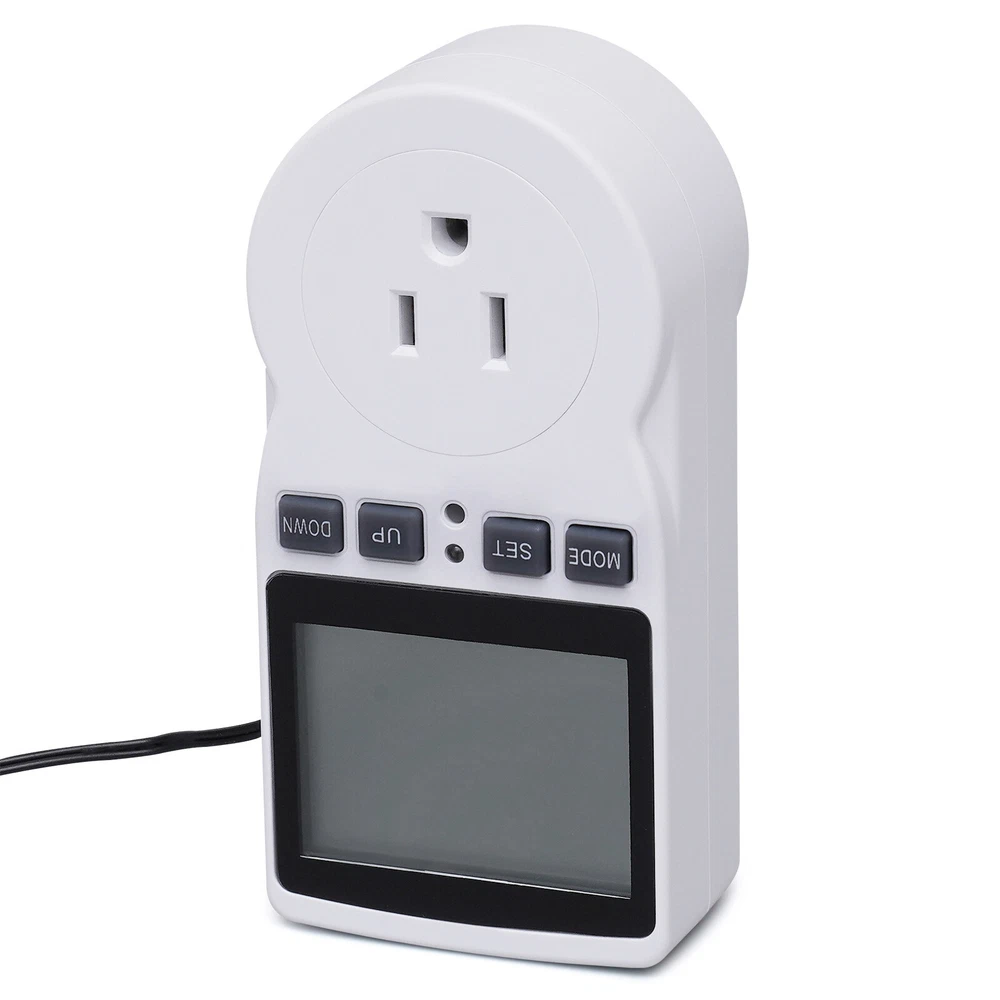 Specification Material: ABS Color: White Rated Voltage: AC100-250v, 50/60Hz Rated Load: 15A 1800W Temperature Range: -40-120oC Temperature Error: ±1% Temperature Display Resolution: 0.1oC Timing Error: Max. 10 Minutes Package Size: 14.5*8.3*6.6cm/5.71*3.27*2.6inch Product Size: 7.8*6*14cm/3.07*2.36*5.51inch Gross Weight: 0.2kg/0.441lbs Net Weight: 0.15kg/0.331lbs Package Included 1*Outlet Plug Temperature Controller 1*English Manual Digital Thermostat Outlet Plug Temperature Controller Socket Heating Cooling Description This Outlet Plug Temperature Controller Is Made of High-quality Flame Retardant Abs Material, Giving You More Peace of Mind. the Large Ultra-clear Led Screen Allows You to Feel the Temperature Change More Intuitively. It Has Various Functions Such As Detecting Temperature, Setting Temperature, and Timing, Which Is Ideal for Intelligent Temperature Control in Places Such As Carbon Crystal Heating, Aquaculture, Greenhouse Sheds, and Home Living. Specification Material: Abs Color: White Rated Voltage: Ac100-250v, 50/60hz Rated Load: 15a 1800w Temperature Range: -40-120oc Temperature Error: ±1% Temperature Display Resolution: 0.1oc Timing Error: Max. 10 Minutes Package Size: 14.5*8.3*6.6cm/5.71*3.27*2.6inch Product Size: 7.8*6*14cm/3.07*2.36*5.51inch Gross Weight: 0.2kg/0.441lbs Net Weight: 0.15kg/0.331lbs Package Included 1*Outlet Plug Temperature Controller 1*English Manual Key Features Necessary Supplies : This Plug Temperature Controller Can Detect Temperature, Set Temperature, and Have Other Functions. It Is Necessary for Intelligent Temperature Control in Places Such As Carbon Crystal Heating, Aquaculture, Greenhouse, and Home Living. One Screen with Three Displays : It Has a Screen with Three Displays, Showing the Real-time Measured Temperature, the Start Temperature, and the Stop Temperature. the Numbers Are Visible, so You Can Read Them Easily. Temperature Correction Function : When You Long-press the Mode Button to Power on, It Will Enter the Real-time Temperature Correction After 2 Seconds, Which Is Very Convenient and Worry-free. Screen Lock Protection : When You Press the Mode Key and the Setting Key at the Same Time for More than 3 Seconds, It Will Be Able to Screen Lock. This Way, Even If You Accidentally Press Other Keys, There Will Be No Trouble. Memory Function : When the Power Is off, It Will Automatically save All the Current Settings to Avoid the Trouble of Data Loss Due to some Accidental Power Loss. Easy to Use : It Comes with a Large Led Display and Four Buttons. and We Are Equipped with Detailed Instructions for Use, so You Can Easily Operate. Great Durability : It Is Made of High-quality Flame Retardant Abs Material, so It Is Not Only Good Quality but Also More Durable. Compact and Lightweight : the 5.51*3.07*2.36inch in Size and 0.331lbs in Weight Can Be Easily Carried and Used by You. Details Led Display: It Uses a Large Led Display, Which Can Display Data More Clearly and Minimize Damage to Your Eyes. Flame-retardant Shell: It Uses a Flame-retardant Abs Shell, so Even If the Temperature Is High Due to Long-term Use, It Will Not Cause Combustion. Two Temperature Displays : It Supports Both Celsius and Fahrenheit Displays. You Can Choose According to Your Needs. Application It Is Suitable for Intelligent Temperature Control in Places Such As Carbon Crystal Heating, Aquaculture, Greenhouse Sheds, and Home Living. Notes 1. Please Note That the Total Resistive Load of the Electrical Power Connected to This Product Must Not Exceed the Power, Otherwise the Product May Be Damaged. Serious Cases May Cause a Fire. 2. This Product Has No Waterproof Function, Only Used in Dry Indoor Conditions. 3. Do Not Let Children Touch It and Keep It Away from the Fire Source. Do Not Insert Foreign Objects Other than the Plug into the Jack. 4. Please Insert the Plug Completely into the Jack. 5. Do Not Disassemble the Product Without Permission. Please Call a Professional When You Need to Repair It. 6. Please Read the User Manual Carefully Before Use and Pay Special Attention to the Safety Precautions Included. 7. Please Allow a Slight Color Difference Due to Shooting Light, and 1-3cm Error Due to Manual Measurement, Please Make Sure You Don't Mind Before Ordering. Payment Delivery details Terms of sales About us Contact us Payment We accept ebay payment 。 Fees such as import duties, taxes are not included in the item price or shipping costs. These charges are the buyer's responsibility. Delivery details Shipping: 2-9 working days to: USA Terms of sales We maintain high standards of excellence and strive for hundred percent customer satisfaction. Feedback is very important to us. We hope that you contact us immediately before you give neutral or negative feedback, so that we can address your concerns. It is impossible to address issues if we do not know about them! About us Your satis faction is our ultimate goal. We work hard to earn your trust and future business. Our certified technicians have tested each item before shipping. The unit comes with 1 year limited warranty on all manufacturing defects. a) If you receive a defective item, you may return it or ask for a discount. Please contact us within 14 days after you receive the package. b) What you returned must be intact and in its original packaging as re? u. Customer is responsible for shipping costs of the returned item. c) We will cover the cost of shipping back t with the shipping rate indicated in the registration page. We will send you a new unit or refund the full payment you paid. Thank you. Contact us Business Hour Business Hour: Monday To Friday: 8:30 AM to 5:00 PM (Beijing China time) Due to time zones, our reply to your questions may not be immediately. But within above working time, we will reply your email within 24 hours. If it's non-workdays, please kindly be patient and wait till Monday. Please contact us with ebay message. Please feel free to contact us if you have any questions. Monday To Frida