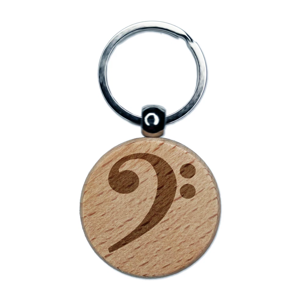 Dije de etiqueta de llavero redondo de música grabada en madera con llave de bajo