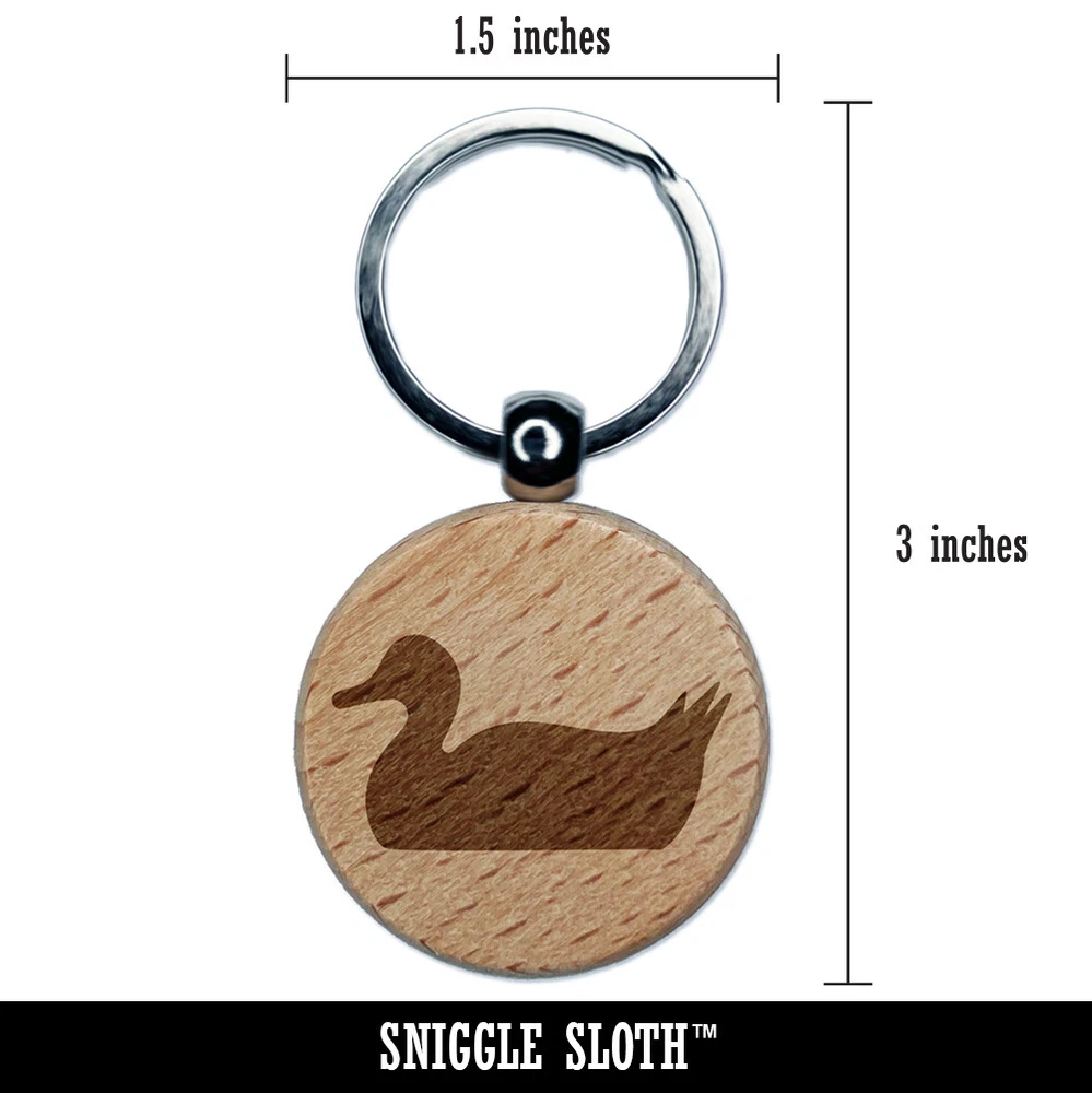 Dije de etiqueta para llavero redondo de madera maciza grabada de pato