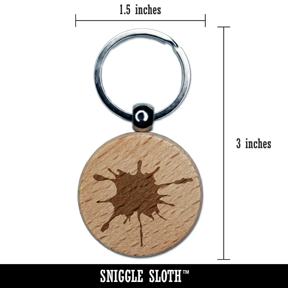 Dije llavero redondo de madera grabada con salpicaduras de tinta