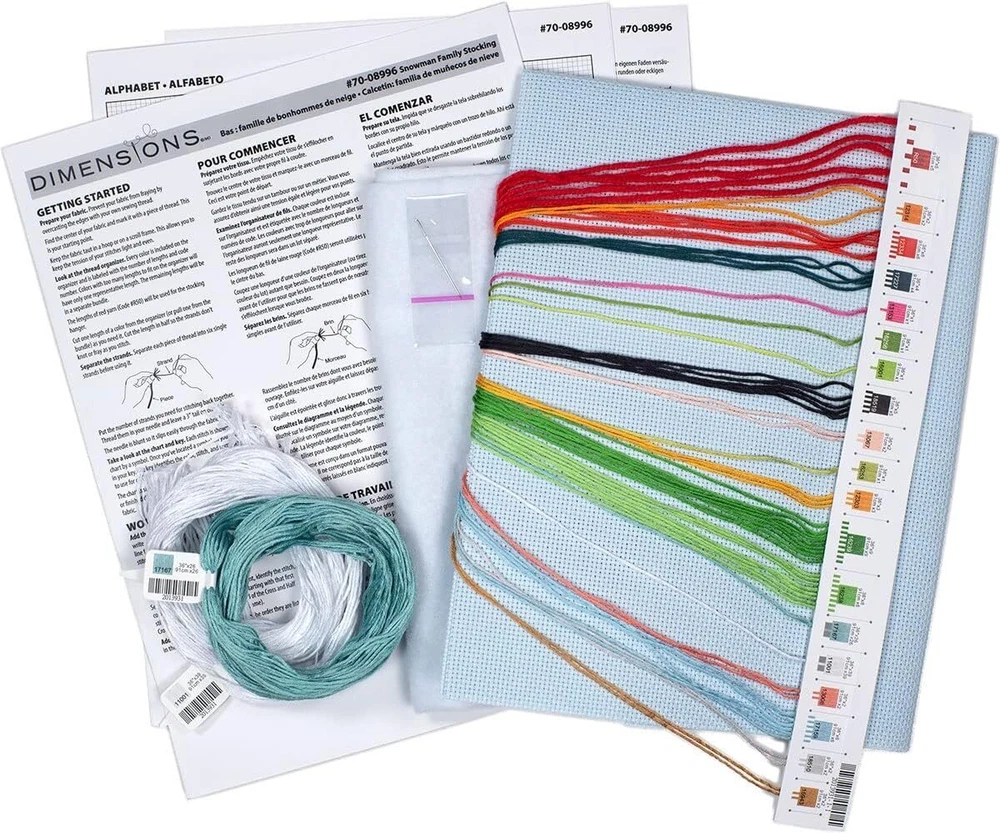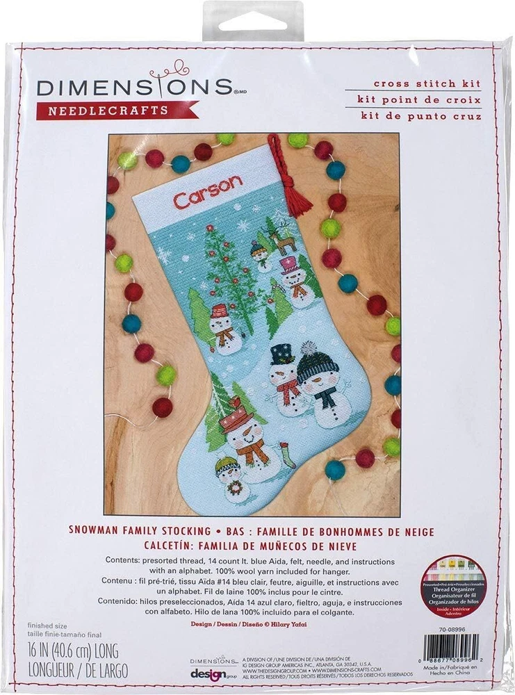 This charming snowman stocking Christmas counted cross stitch pattern by Dimensions in counted cross stitch features an array of fun, bright colors that are perfect for the holiday season! Copyright Hilary Yafai. Counted cross stitch set contains presorted thread, 14 count lt. blue Aida, felt for stocking back, needle 100% wool yarn for hanger, needle, and instructions with an alphabet for personalizing. Stocking measures 16" L. Dimensions counted cross stitch kit for adults and kids comes with presorted thread, wool yarn for stocking hanger, 14 count lt. blue Aida, felt, needle and instructions with an alphabet for customizing. Finished cross stitch Christmas stocking measures 16" L. The whole family is together to celebrate the holiday in this fun and festive counted cross stitch Christmas stocking kit! The perfect Christmas craft, personalize this stocking cross stitch pattern with names, dates, and more for an classic keepsake. Fill the completed stocking with treats and goodies for a festive Christmas gift.
