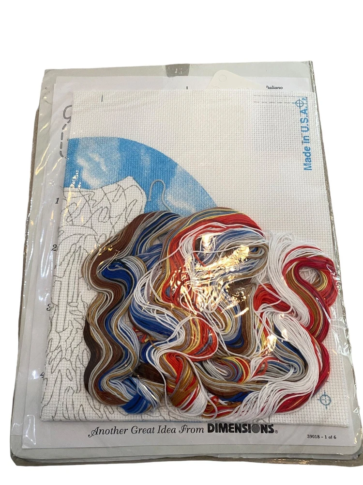 This Dimensions No Count Cross Stitch Kit features a patriotic theme with a FREEDOM EAGLE design in a 14x10 oval frame. The kit includes everything needed to complete the cross stitch project, including needle, fabric/cloth, and thread/floss, as well as easy-to-follow instructions. The model number for this kit is 39018. It's perfect for anyone looking to create a unique framed picture using the cross stitch technique.
