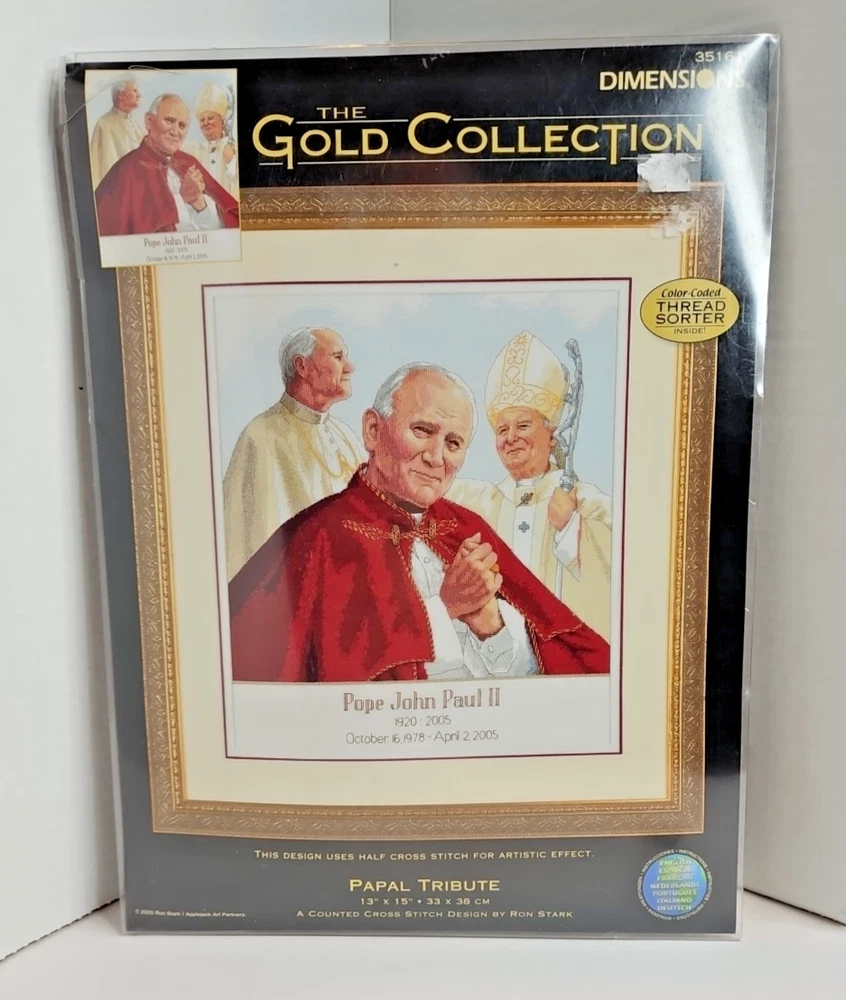 Dimensions The Gold Collection Papal Tribute Pope John Paul II Cross Stitch Kit Will ship Worldwide. Please be advised that international buyers are responsible for all import costs. Also please note that International Small Packet Ground delivery may take up to 3 months. Some Shipping options do not come with Tracking, please ask if you require a tracked shipment. Please Check out my other listings. Let me know if you have questions about any of my items, require additional pictures or if you have any issues regarding an order through me. Please reach out, I will try to respond as quickly as possible to all questions and concerns. Thanks for looking and have a great day.