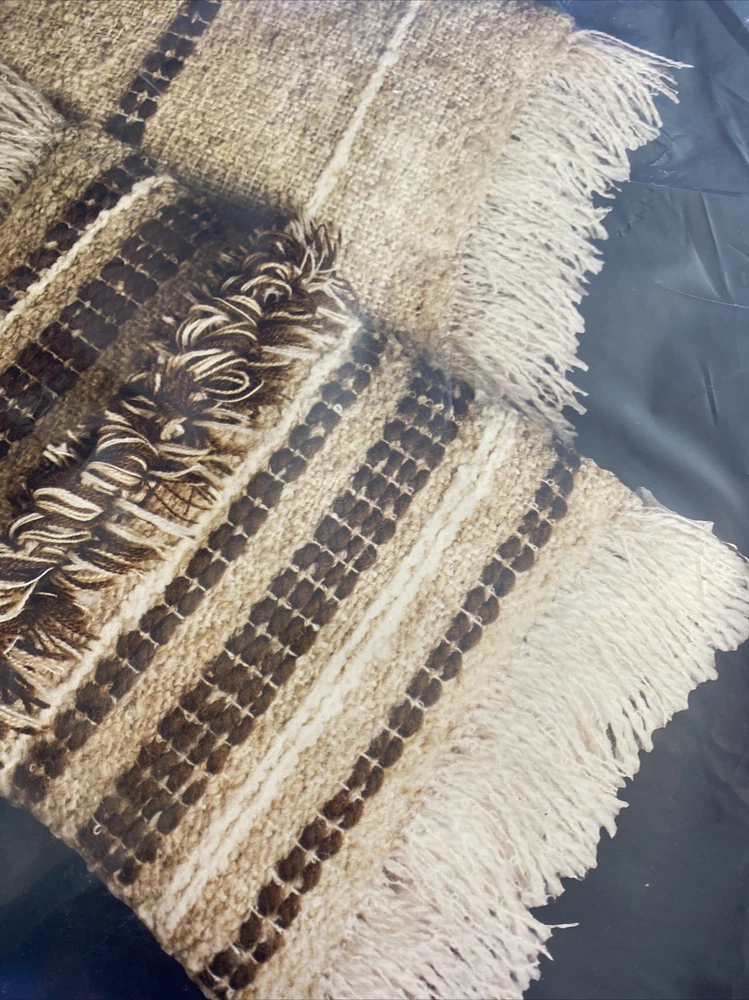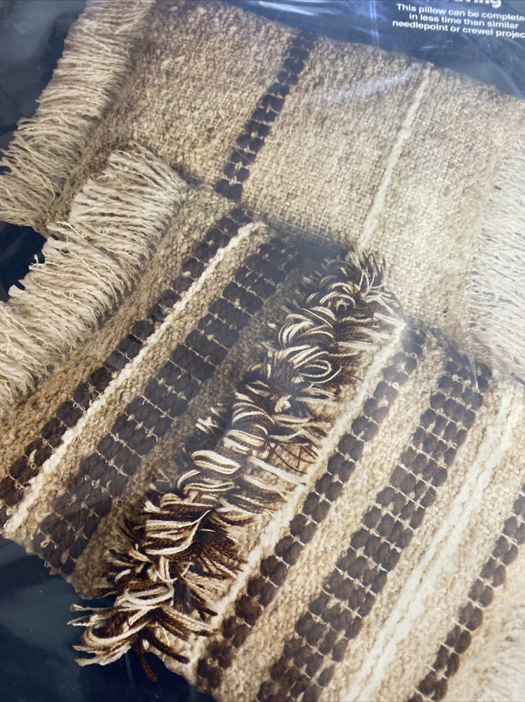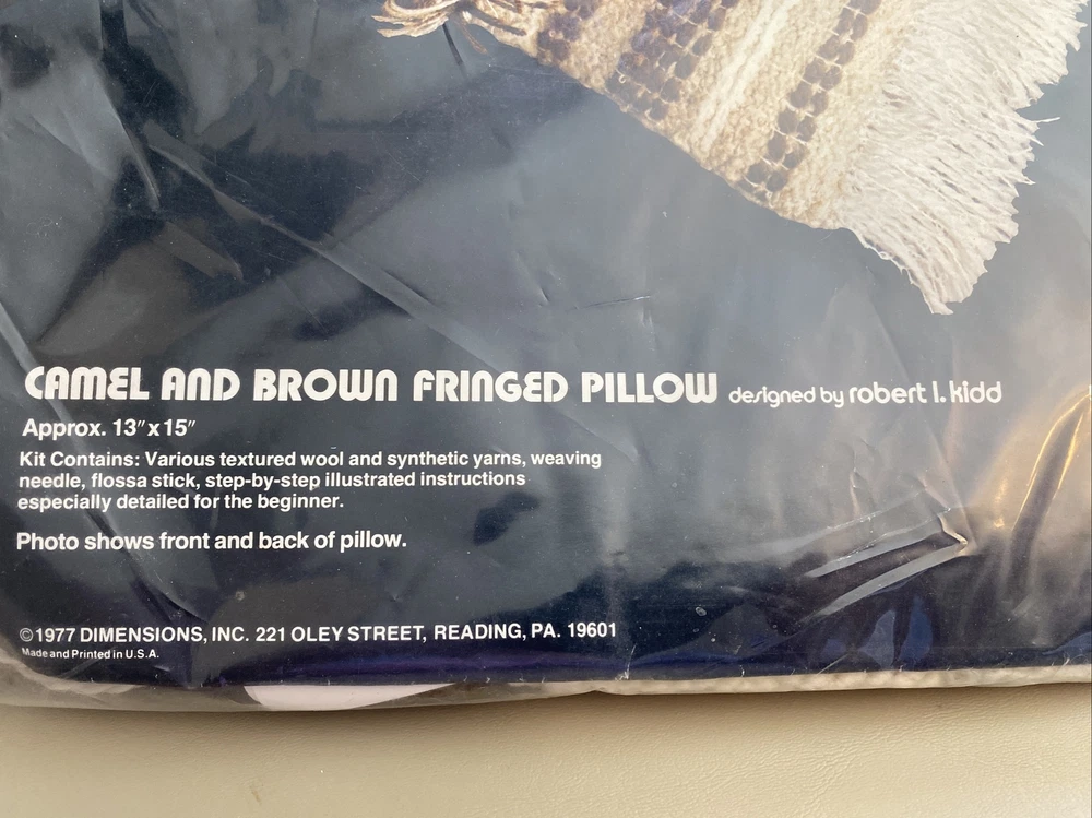 New in the package Vintage 1977 Dimensions Weaving Kit 5002 Camel & Brown fringed pillow 13" x 15"