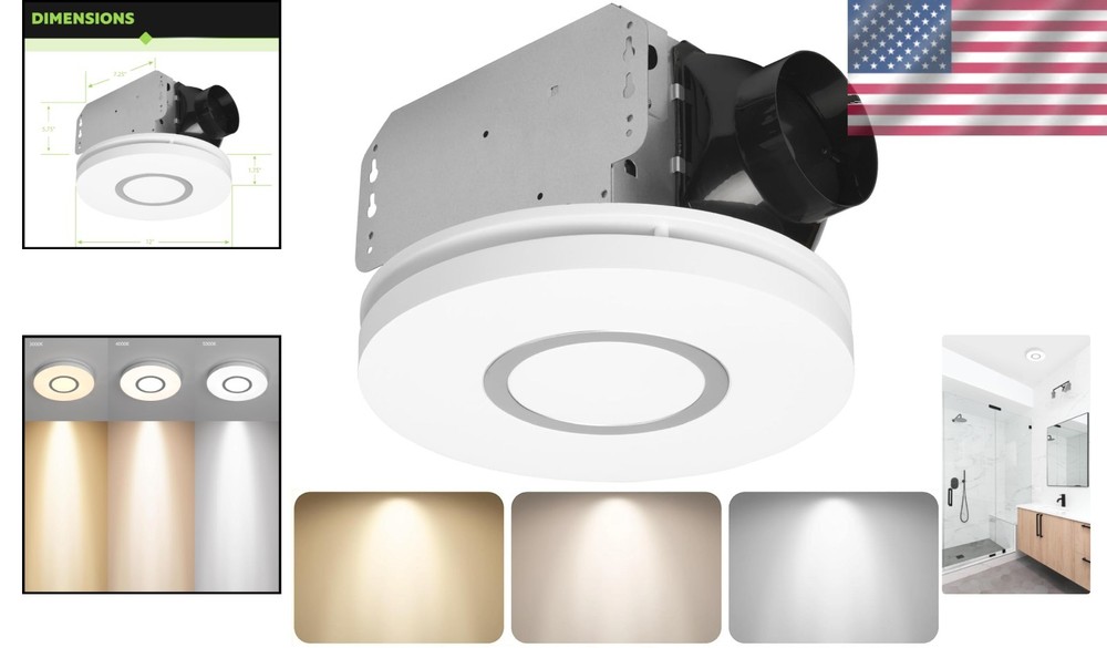 Bathroom Exhaust Fan LED Lights Dimmable Color Changing Quiet 80 CFM ‹ › ‹ › ‹ › ‹ › ‹ › ‹ › ‹ › ‹ › ‹ › ‹ › ‹ › ‹ › Bathroom Exhaust Fan with LED Lights -Dimmable Color Changing | Quiet 80 CFM Features: Adjustable Color Temperature: Enjoy customizable lighting with options of 3000K warm white, 4000K cool white, and 5000K daylight, plus a soothing 2700K night light setting. Quiet Air Flow: Experience peaceful ventilation with an airflow of 80 CFM, perfectly suited for spaces up to 80 square feet, operating at a gentle 1.1 sones—no louder than rustling leaves. Energy-Saving LED: Integrated dimmable LED technology delivers 1000 lumens without the hassle of replacing bulbs, ensuring significant energy savings for . Versatile Use: Ideal for bathrooms, laundry rooms, exercise rooms, or any space needing moisture removal. Easy Installation: The innovative EasyAnchor system streamlines the installation process, fitting into standard housing sizes with minimal access requirements. Benefits: Customized lighting options fit every mood and need. Maintains a tranquil atmosphere with ultra-quiet operation. Promotes a healthier home environment by effectively eliminating moisture. Designed for longevity, engineered for continuous airflow for at least 30,000 hours. Saves on energy bills with built-in LED technology and superior airflow efficiency. Experience the Difference The Bathroom Exhaust Fan with LED Lights is an essential upgrade for any homeowner seeking comfort and efficiency. With its customizable color temperatures and whisper-quiet operation, this fan not only transforms your bathroom into a serene oasis but also provides effective ventilation. Embrace innovation and style—install the ultimate Bathroom Exhaust Fan with LED Lights, and redefine your bathing experience today. Shipping Free & Fast Shipping - We offer free shipping to most of the USA with a normal delivery time of 3-7 days. However, due to the current situation, additional delivery time (up to 3 weeks) may be required for some items. Alternative Carriers - We may use alternative carriers (e.g. USPS, FedEx, UPS, etc.) to ensure your package arrives safely and on time. Due to the use of multiple carriers, we are unable to provide a tracking number automatically. Handling Time - Orders are processed and shipped within 1-2 business days of receiving cleared payment. Shipping Restrictions - Shipping to Alaska, Hawaii, Puerto Rico, Guam, and other US territories may incur shipping charges or delivery restrictions. Please contact us before ordering, or your order can be refunded/cancelled. State Restrictions - There may be restrictions based on your state of purchase. For example, certain items may not be shipped to California due to state regulations. Contact for Tracking Updates - If you require tracking updates or have any concerns about the delivery of your order, please feel free to contact us, and we will be happy to assist you. Return 30-Day Hassle-Free Returns - We want you to be completely satisfied with your purchase. If you are not, you can return the item within 30 days of receiving it for a full refund or exchange. Easy Return Process - To start a return, simply contact us and we will provide you with a prepaid return shipping label and detailed instructions. Restocking Fee - There are no restocking fees for returns. However, the buyer is responsible for return shipping costs if the return is not due to a seller's error. Refund Processing Time - Refunds will be processed within 5 business days of receiving the returned item in its condition. Payment We accept all major credit cards, PayPal, and Apple Pay for your convenience. Your payment information is secure and encrypted to ensure a safe and seamless transaction. Please complete your payment within 3 days of purchase to avoid any delays in shipping. Feedback Your feedback is extremely important to us. We strive to provide the best products and customer service possible. If you are satisfied with your purchase, please take a moment to leave us a positive review. If you have any concerns or issues with your order, please contact us before leaving negative feedback. We are committed to resolving any problems and ensuring your satisfaction. Contact Us If you have any questions or concerns, please feel free to out to our customer support team. You can contact us through the eBay messaging system. We are available Monday to Friday, 9:00 am to 5:00 pm EST, and we will do our best to respond to your inquiry within 24 hours. Buy it now and enjoy a pleasant shopping experience! Unit Quantity: 1.0 count Material: Alloy Steel Features: Dimmable LED Light,Color Changing,Energy Saving,Quiet operation,Easy installation Room: Any Room,Bathroom,Laundry Room,Exercise Room Mounting: Ceiling Power Source: AC Control Style: Remote Type: Exhaust Fan Ventilation System: Exhaust Fan Color: 3 colors Item Depth: 12 in Item Height: 7.4 in Item Diameter: 12 in Item Weight: 6 lb Shape: Square Number of Blades: 1 Number of Speeds: 1 Voltage: 120 V Finish: Painted Power: 80 W Operating Sound Rating: 1.1 sones
