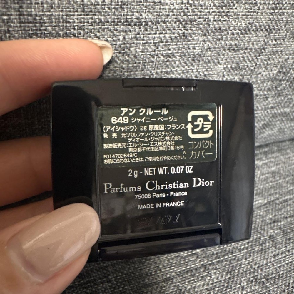 Christian Dior Eyeshadow 649 Shiny Beige 2g Compact Makeup Key Features ## Product Overview This is a brand new, unused Christian Dior eyeshadow in the shade 649 Shiny Beige. Presented in a compact 2g size, it offers a luxurious gold-toned color suitable for various makeup looks. ## Key Features and Benefits - Authentic Christian Dior eyeshadow, known for high-quality formulations and elegant packaging - Compact design ideal for on-the-go application - Shiny beige with gold undertones provides a sophisticated, luminous finish - Perfect for creating both subtle and glamorous eye makeup looks - No included applicator or eyeliner, allowing customization ## Technical Specifications and Details - Brand: Christian Dior - Category: Eyeshadow - Condition: New, Unused - Size: 2g - Color: Gold-based shade (649 Shiny Beige) - Made in France - Packaging: Compact (no included tip or applicator) ## Product Condition This eyeshadow is brand new and unused, ensuring optimal quality and freshness. It has not been opened or used, making it suitable for collectors or first-time users seeking authentic Dior products. ## Main Selling Points - Genuine Dior product with original packaging - Compact and portable for easy application - Elegant gold and beige shade perfect for versatile makeup styles - Unused and in pristine condition - Made in France, ensuring high manufacturing standards ## Additional Information Please note that this product does not include an eyeliner or applicator. The shade is a shimmering beige with a gold hue, ideal for adding a luminous touch to your eye makeup. Perfect for beauty enthusiasts seeking authentic Dior cosmetics. Specifications Brand Christian Dior Product Description Item Title Dior Eyeshadow 649 Shiny Beige 2G Payment Supports managed payments Please pay within 5 days after auction is finished. About Us We are located in Japan. It's our pleasure to make you happy by proposing our recommend item. If you have any questions or request about items, please feel free to ask us. International Buyers - Please Note: -Import duties, taxes, and charges are not included in the item price or shipping charges. These charges are the buyer's responsibility. -Please check with your country's customs office to determine what these additional costs will be prior to bidding/buying. -These charges are normally collected by the delivering freight (shipping) company or when you pick the item up - do not confuse them for additional shipping charges. -We do not mark merchandise values below value or mark items as - gifts - The US and International government regulations prohibit such behavior. Thank you for your understanding.