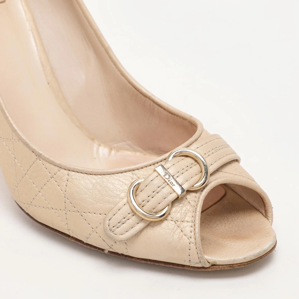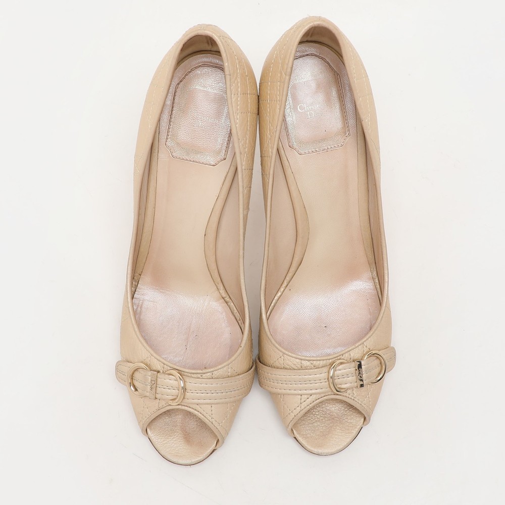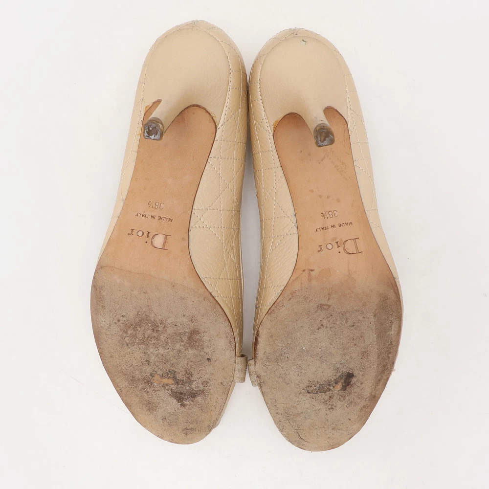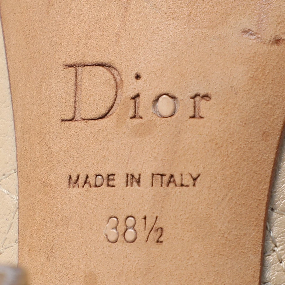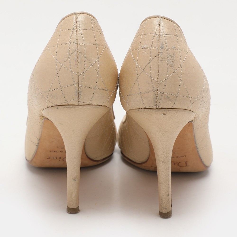 Make a chic style statement with these designer pumps. They showcase sturdy heels and durable soles, perfect for your fashionable outingsCertified by The Luxury Closet - This item has gone through a detailed authentication process overseen by our experts. We offer a lifetime guarantee of authenticity on all our items. Import duties, taxes and charges are not included in the item price. These charges are the buyers responsibility. Please check with your country’s customs office to determine what these additional cost will be prior to buying. Our eBay Store About Us Contact Us Add to Favorite Sellers Dior Beige Cannage Leather Embellished Peep Toe Pumps Size 38.5 $151.8 Make a chic style statement with these designer pumps. They showcase sturdy heels and durable soles, perfect for your fashionable outings Product Details Brand Color Beige Dimensions Material Leather Size 38.5 Outsole Width 8 cm Outsole Length 22.5 cm Heel Height 9.5 cm Includes The Luxury Closet Packaging Certified by The Luxury Closet This item has gone through a detailed authentication process overseen by our experts. We offer a lifetime guarantee of authenticity on all our items. How We Check The in-house team of experts at The Luxury Closet is highly trained to verify the authenticity and the condition of the luxury products. They ensure that only 100% authentic items are put on sale.The evaluation process is unique with its own mix of assessment criteria and differs according to the category. Each item is evaluated based on the following combination of hallmarks, hardware, stitching, symmetry, material, craftsmanship, stamping, codes, hologram stickers, and packaging. Our authenticators also check if the items have been modified or amended (e.g., aftermarket diamonds, replaced batteries, repaired bags, etc.) International Buyers Import duties, taxes and charges are not included in the item price. These charges are the buyers responsibility. Please check with your country’s customs office to determine what these additional cost will be prior to buying.