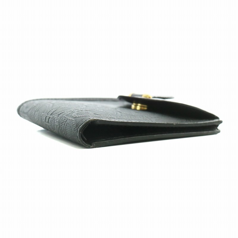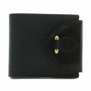Dior Bi-Fold Leather Wallet Black Trotter Pattern Gold Hardware
