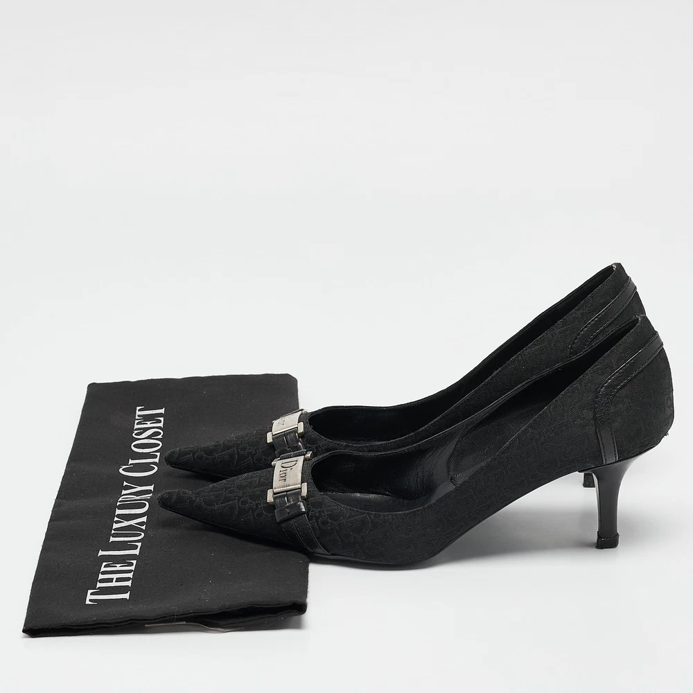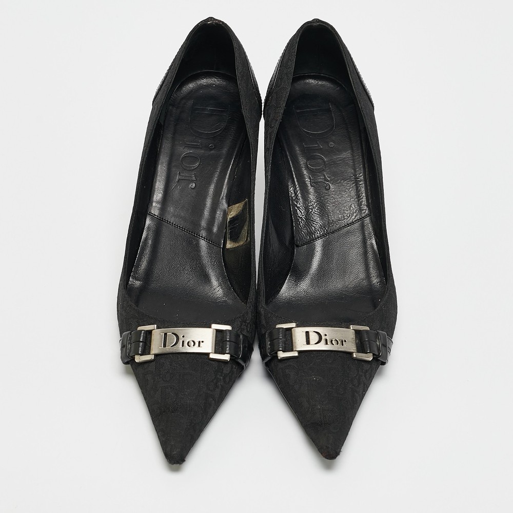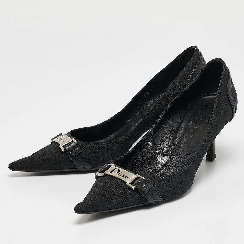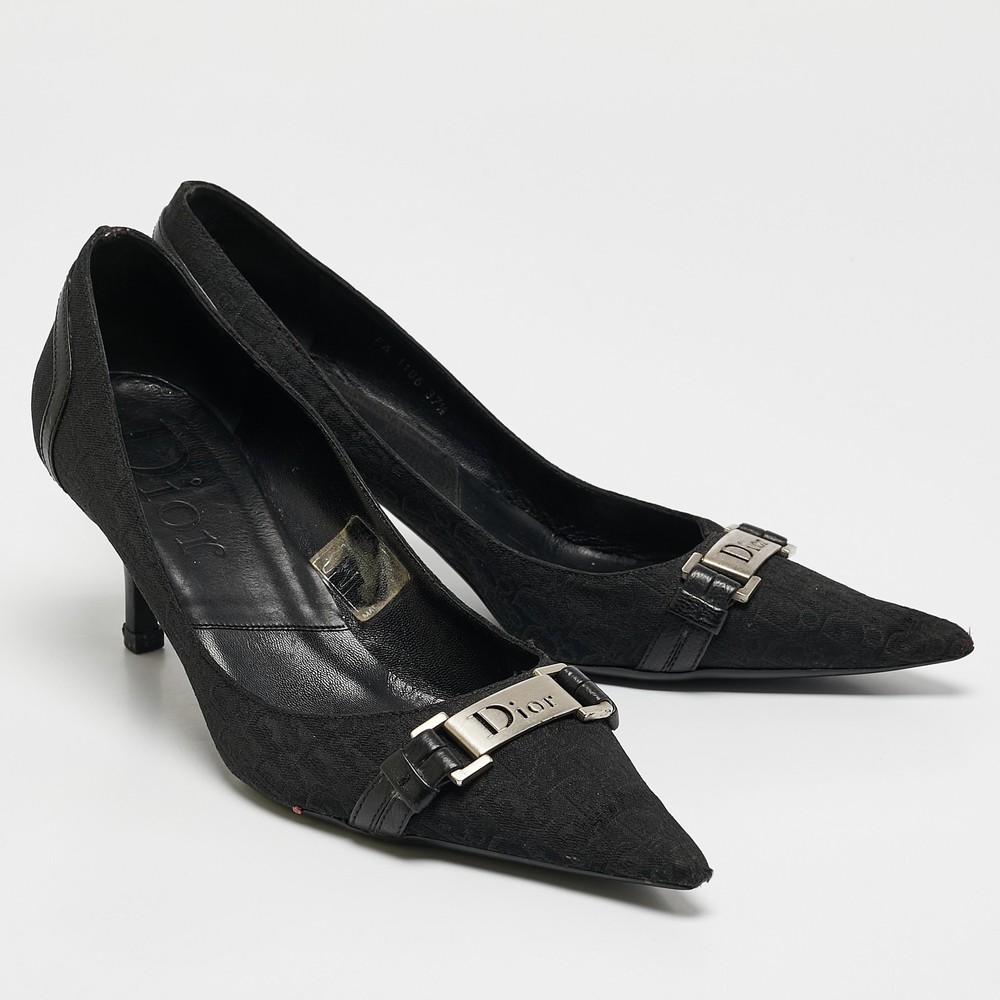 Make a chic style statement with these designer pumps. They showcase sturdy heels and durable soles, perfect for your fashionable outingsCertified by The Luxury Closet - This item has gone through a detailed authentication process overseen by our experts. We offer a lifetime guarantee of authenticity on all our items. Import duties, taxes and charges are not included in the item price. These charges are the buyers responsibility. Please check with your country’s customs office to determine what these additional cost will be prior to buying. Our eBay Store About Us Contact Us Add to Favorite Sellers Dior Black Diorissimo Canvas And Leather Pointed Toe Pumps Size 37.5 $167.2 Make a chic style statement with these designer pumps. They showcase sturdy heels and durable soles, perfect for your fashionable outings Product Details Brand Color Black Dimensions Material Canvas, Leather Size 37.5 Outsole Width 8 cm Outsole Length 27 cm Heel Height 7 cm Includes The Luxury Closet Packaging Certified by The Luxury Closet This item has gone through a detailed authentication process overseen by our experts. We offer a lifetime guarantee of authenticity on all our items. How We Check The in-house team of experts at The Luxury Closet is highly trained to verify the authenticity and the condition of the luxury products. They ensure that only 100% authentic items are put on sale.The evaluation process is unique with its own mix of assessment criteria and differs according to the category. Each item is evaluated based on the following combination of hallmarks, hardware, stitching, symmetry, material, craftsmanship, stamping, codes, hologram stickers, and packaging. Our authenticators also check if the items have been modified or amended (e.g., aftermarket diamonds, replaced batteries, repaired bags, etc.) International Buyers Import duties, taxes and charges are not included in the item price. These charges are the buyers responsibility. Please check with your country’s customs office to determine what these additional cost will be prior to buying.