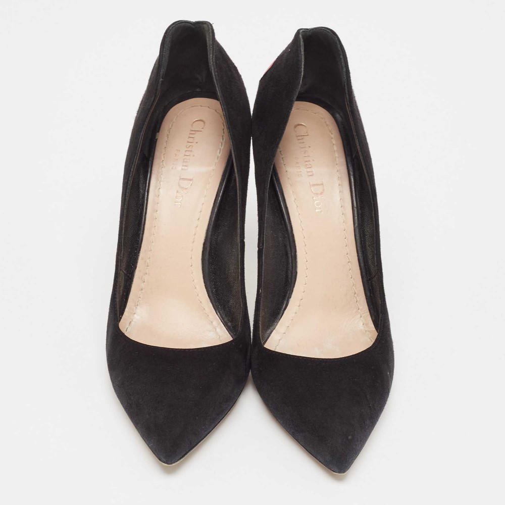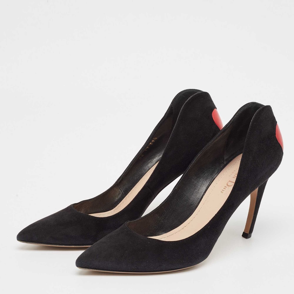 Gift your feet these elegant pumps by Dior today. Crafted using black suede, the pointed toe pumps are a blend of quality and appeal. They feature pointed toes, heart detailing on the counters, leather lined insoles, and 8.5 cm heels.Certified by The Luxury Closet - This item has gone through a detailed authentication process overseen by our experts. We offer a lifetime guarantee of authenticity on all our items. Import duties, taxes and charges are not included in the item price. These charges are the buyers responsibility. Please check with your country’s customs office to determine what these additional cost will be prior to buying. Our eBay Store About Us Contact Us Add to Favorite Sellers Dior Black/Red Suede and Leather Heart Pointed Toe Pumps Size 39.5 $151.8 Gift your feet these elegant pumps by Dior today. Crafted using black suede, the pointed toe pumps are a blend of quality and appeal. They feature pointed toes, heart detailing on the counters, leather lined insoles, and 8.5 cm heels. Product Details Brand Color Black Dimensions Material Leather, Suede Size 39.5 Outsole Width 8 cm Outsole Length 23 cm Heel Height 8.5 cm Includes Original Dustbag, The Luxury Closet Packaging Certified by The Luxury Closet This item has gone through a detailed authentication process overseen by our experts. We offer a lifetime guarantee of authenticity on all our items. How We Check The in-house team of experts at The Luxury Closet is highly trained to verify the authenticity and the condition of the luxury products. They ensure that only 100% authentic items are put on sale.The evaluation process is unique with its own mix of assessment criteria and differs according to the category. Each item is evaluated based on the following combination of hallmarks, hardware, stitching, symmetry, material, craftsmanship, stamping, codes, hologram stickers, and packaging. Our authenticators also check if the items have been modified or amended (e.g., aftermarket diamonds, replaced batteries, repaired bags, etc.) International Buyers Import duties, taxes and charges are not included in the item price. These charges are the buyers responsibility. Please check with your country’s customs office to determine what these additional cost will be prior to buying.
