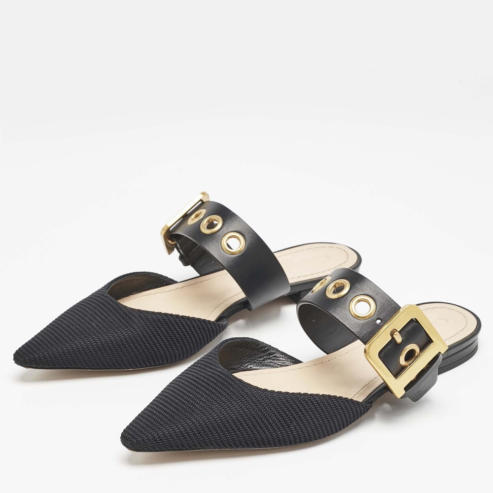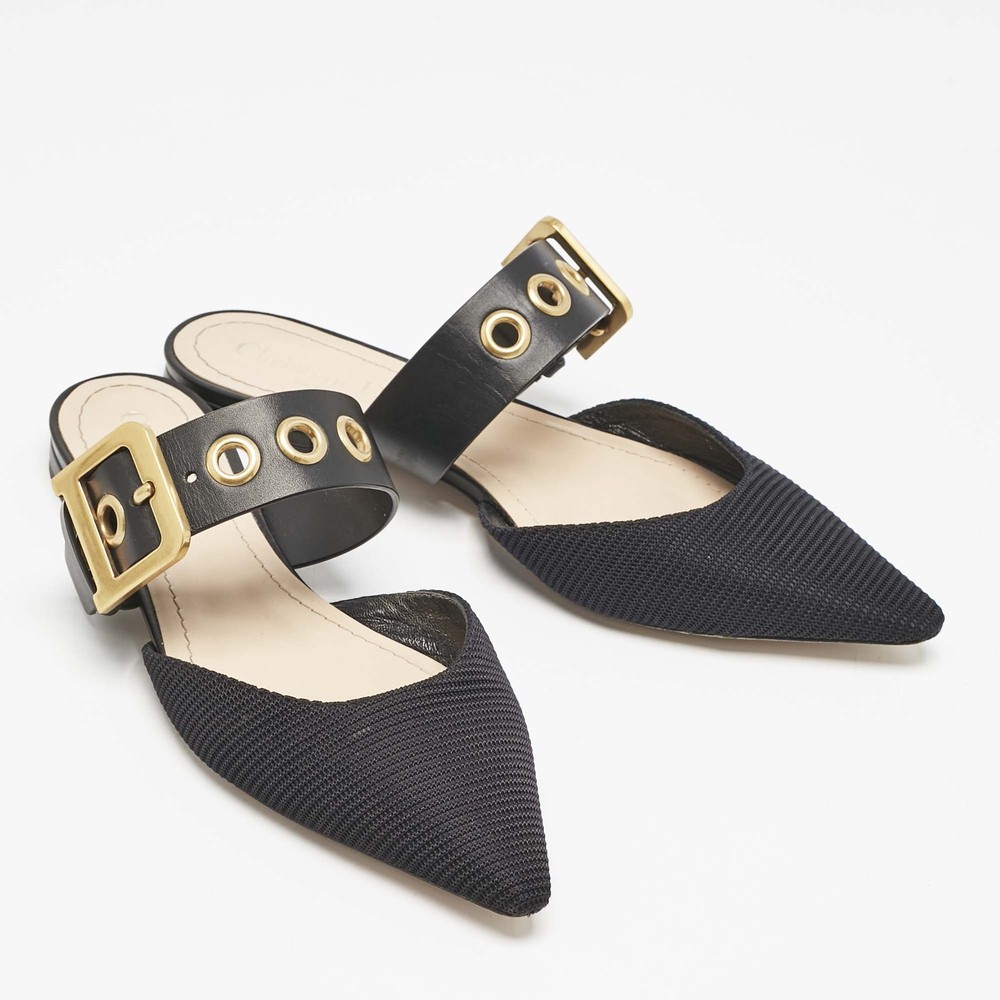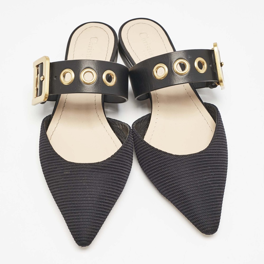 $ 92.4Dior Black Technical Fabric Leather D-Dior Flat Mules Size 37.5