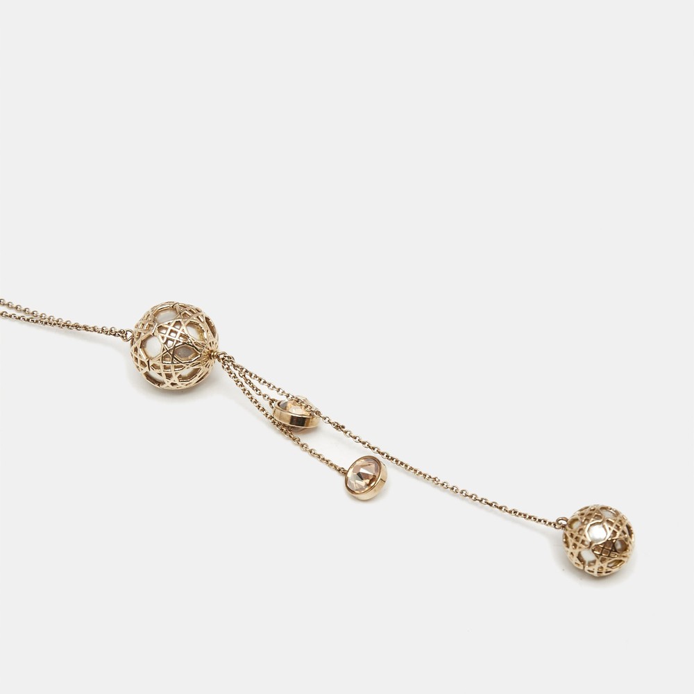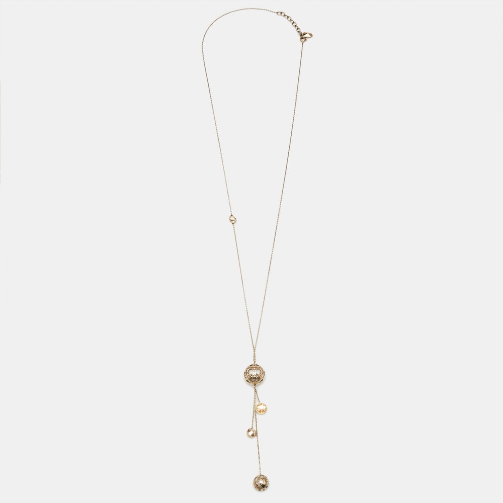 Dior Crystals Gold-Tone Long Chain Necklace Elegant Style