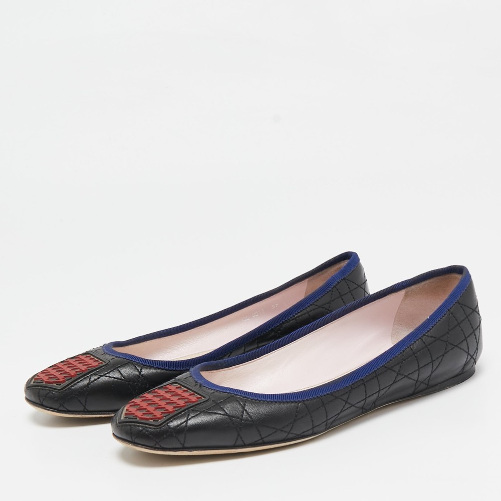 Let this comfortable pair be your first choice when youre out for a long day. These Dior shoes have well sewn uppers beautifully set on durable soles.Certified by The Luxury Closet - This item has gone through a detailed authentication process overseen by our experts. We offer a lifetime guarantee of authenticity on all our items. Import duties, taxes and charges are not included in the item price. These charges are the buyers responsibility. Please check with your country’s customs office to determine what these additional cost will be prior to buying. Our eBay Store About Us Contact Us Add to Favorite Sellers Dior Black/Red Cannage Leather And Rubber Gum Ballet Flats Size 37 $269.5 Let this comfortable pair be your first choice when youre out for a long day. These Dior shoes have well sewn uppers beautifully set on durable soles. Product Details Brand Color Black Dimensions Material Cannage Leather, Rubber Size 37 Outsole Width 8.5 cm Outsole Length 27 cm Heel Height Includes Original Dustbag Certified by The Luxury Closet This item has gone through a detailed authentication process overseen by our experts. We offer a lifetime guarantee of authenticity on all our items. How We Check The in-house team of experts at The Luxury Closet is highly trained to verify the authenticity and the condition of the luxury products. They ensure that only 100% authentic items are put on sale.The evaluation process is unique with its own mix of assessment criteria and differs according to the category. Each item is evaluated based on the following combination of hallmarks, hardware, stitching, symmetry, material, craftsmanship, stamping, codes, hologram stickers, and packaging. Our authenticators also check if the items have been modified or amended (e.g., aftermarket diamonds, replaced batteries, repaired bags, etc.) International Buyers Import duties, taxes and charges are not included in the item price. These charges are the buyers responsibility. Please check with your country’s customs office to determine what these additional cost will be prior to buying.