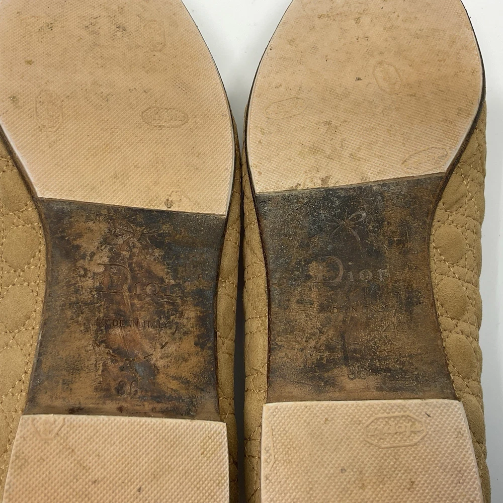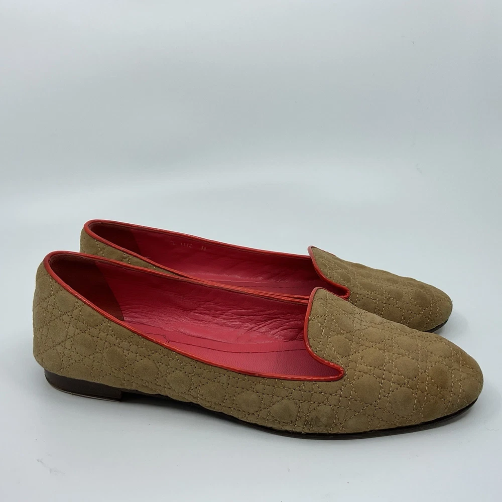 Dior Quilted Tan Suede Shoes Loafers Size EUR 36 / US 5.5 Super Comfortable.
