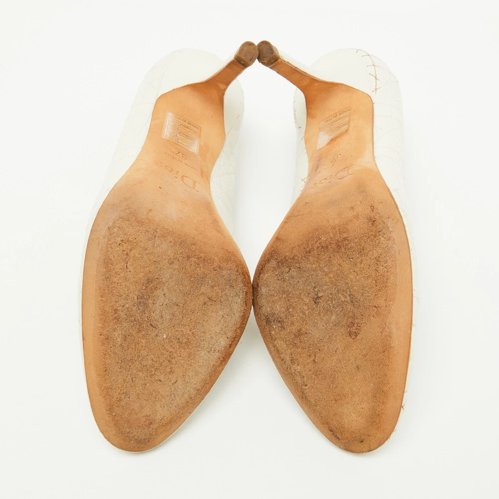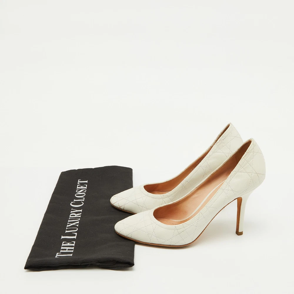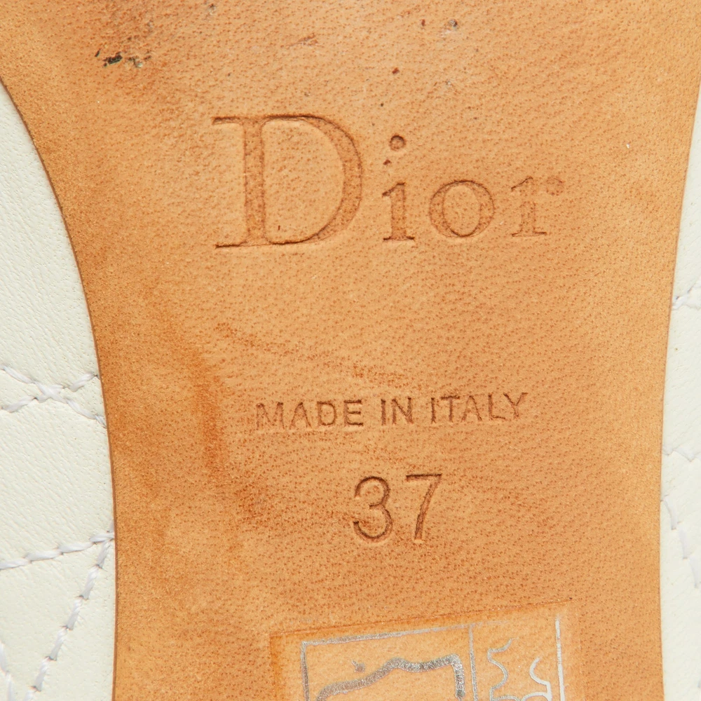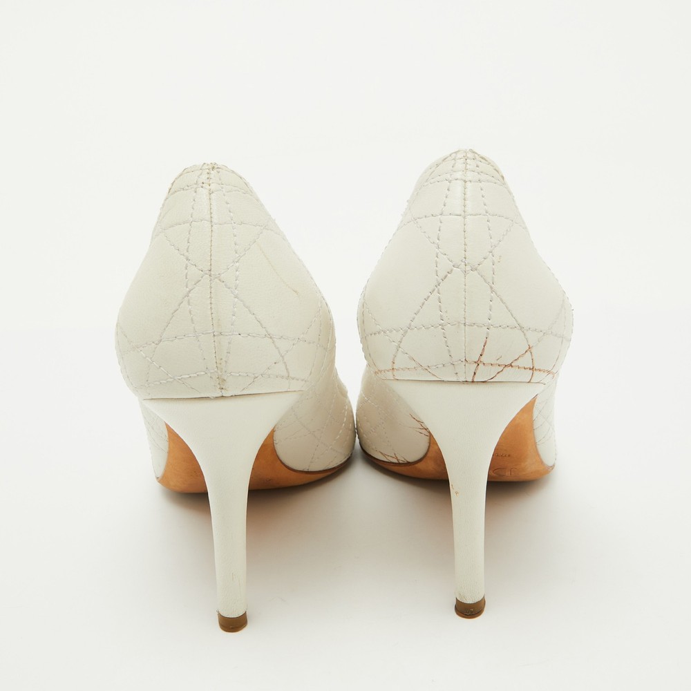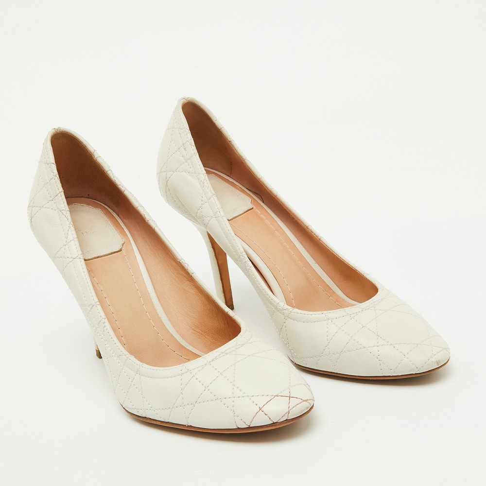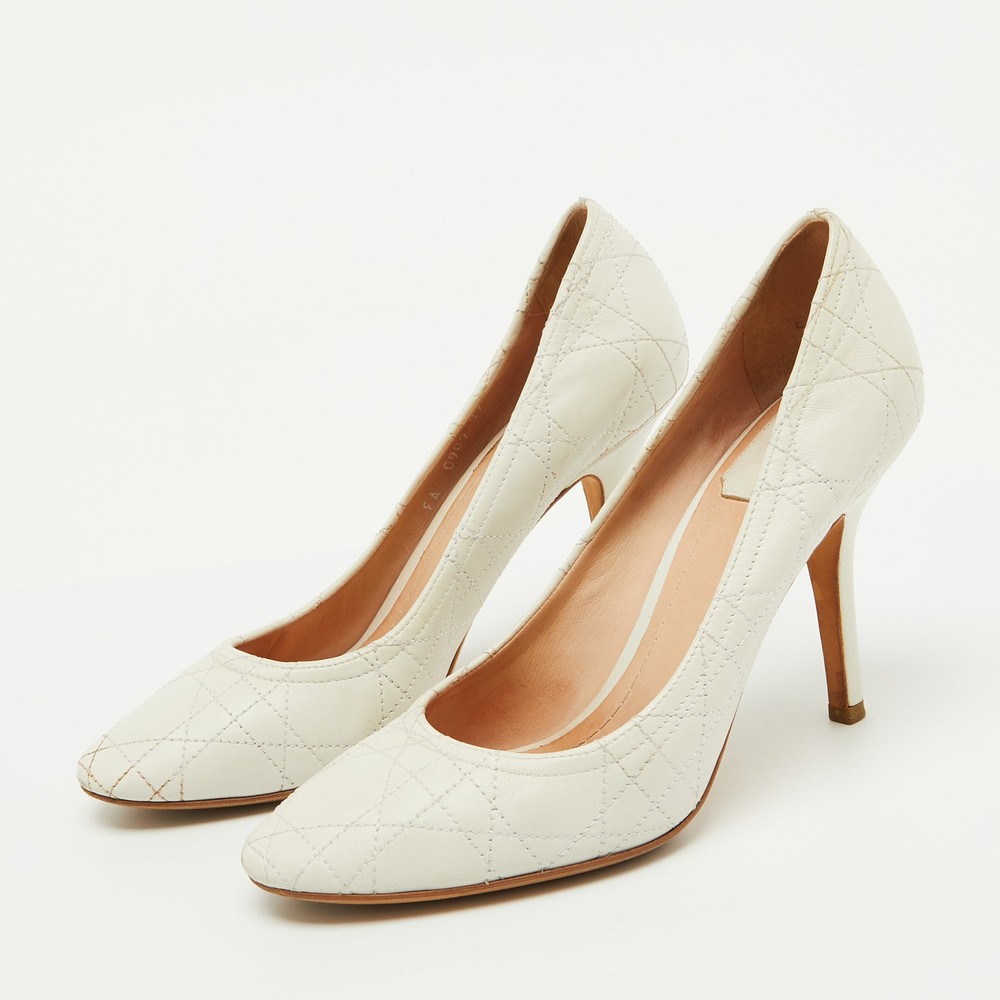 These white pumps from Dior are meant to be a loved choice. Wonderfully crafted and balanced on sleek heels, the pumps will lift your feet in a stunning silhouette.Certified by The Luxury Closet - This item has gone through a detailed authentication process overseen by our experts. We offer a lifetime guarantee of authenticity on all our items. Import duties, taxes and charges are not included in the item price. These charges are the buyers responsibility. Please check with your country’s customs office to determine what these additional cost will be prior to buying. Our eBay Store About Us Contact Us Add to Favorite Sellers Dior White Cannage Leather Pumps Size 37 $165 These white pumps from Dior are meant to be a loved choice. Wonderfully crafted and balanced on sleek heels, the pumps will lift your feet in a stunning silhouette. Product Details Brand Color White Dimensions Material Leather Size 37 Outsole Width 8.5 cm Outsole Length 23 cm Heel Height 9.5 cm Includes The Luxury Closet Packaging Certified by The Luxury Closet This item has gone through a detailed authentication process overseen by our experts. We offer a lifetime guarantee of authenticity on all our items. How We Check The in-house team of experts at The Luxury Closet is highly trained to verify the authenticity and the condition of the luxury products. They ensure that only 100% authentic items are put on sale.The evaluation process is unique with its own mix of assessment criteria and differs according to the category. Each item is evaluated based on the following combination of hallmarks, hardware, stitching, symmetry, material, craftsmanship, stamping, codes, hologram stickers, and packaging. Our authenticators also check if the items have been modified or amended (e.g., aftermarket diamonds, replaced batteries, repaired bags, etc.) International Buyers Import duties, taxes and charges are not included in the item price. These charges are the buyers responsibility. Please check with your country’s customs office to determine what these additional cost will be prior to buying.