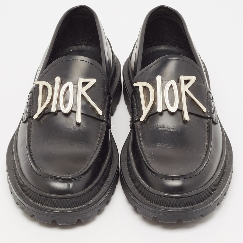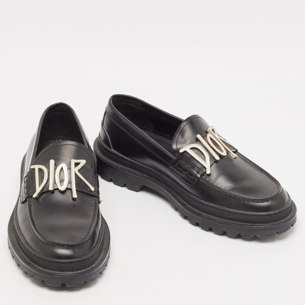 Practical, fashionable, and durable—these designer loafers are carefully built to be fine companions to your everyday style. They come made using the best materials to be a prized buy.Certified by The Luxury Closet - This item has gone through a detailed authentication process overseen by our experts. We offer a lifetime guarantee of authenticity on all our items. Import duties, taxes and charges are not included in the item price. These charges are the buyers responsibility. Please check with your country’s customs office to determine what these additional cost will be prior to buying. Our eBay Store About Us Contact Us Add to Favorite Sellers Dior x Stussy Black Leather Slip On Loafers Size 41 $363 Practical, fashionable, and durable—these designer loafers are carefully built to be fine companions to your everyday style. They come made using the best materials to be a prized buy. Product Details Brand Color Black Dimensions Material Leather Size 41 Outsole Width 12 cm Outsole Length 30 cm Heel Height Includes The Luxury Closet Packaging Certified by The Luxury Closet This item has gone through a detailed authentication process overseen by our experts. We offer a lifetime guarantee of authenticity on all our items. How We Check The in-house team of experts at The Luxury Closet is highly trained to verify the authenticity and the condition of the luxury products. They ensure that only 100% authentic items are put on sale.The evaluation process is unique with its own mix of assessment criteria and differs according to the category. Each item is evaluated based on the following combination of hallmarks, hardware, stitching, symmetry, material, craftsmanship, stamping, codes, hologram stickers, and packaging. Our authenticators also check if the items have been modified or amended (e.g., aftermarket diamonds, replaced batteries, repaired bags, etc.) International Buyers Import duties, taxes and charges are not included in the item price. These charges are the buyers responsibility. Please check with your country’s customs office to determine what these additional cost will be prior to buying.