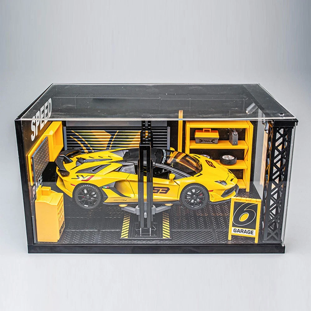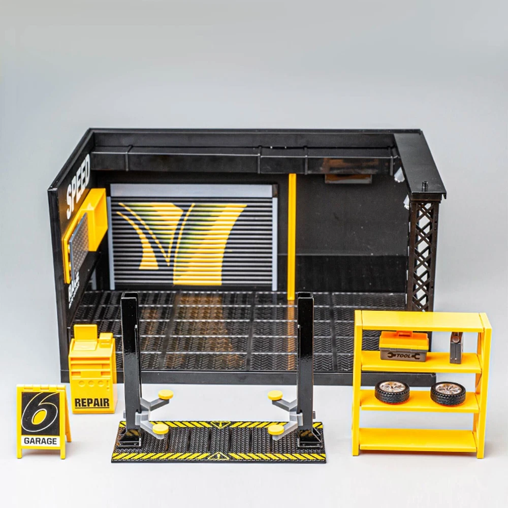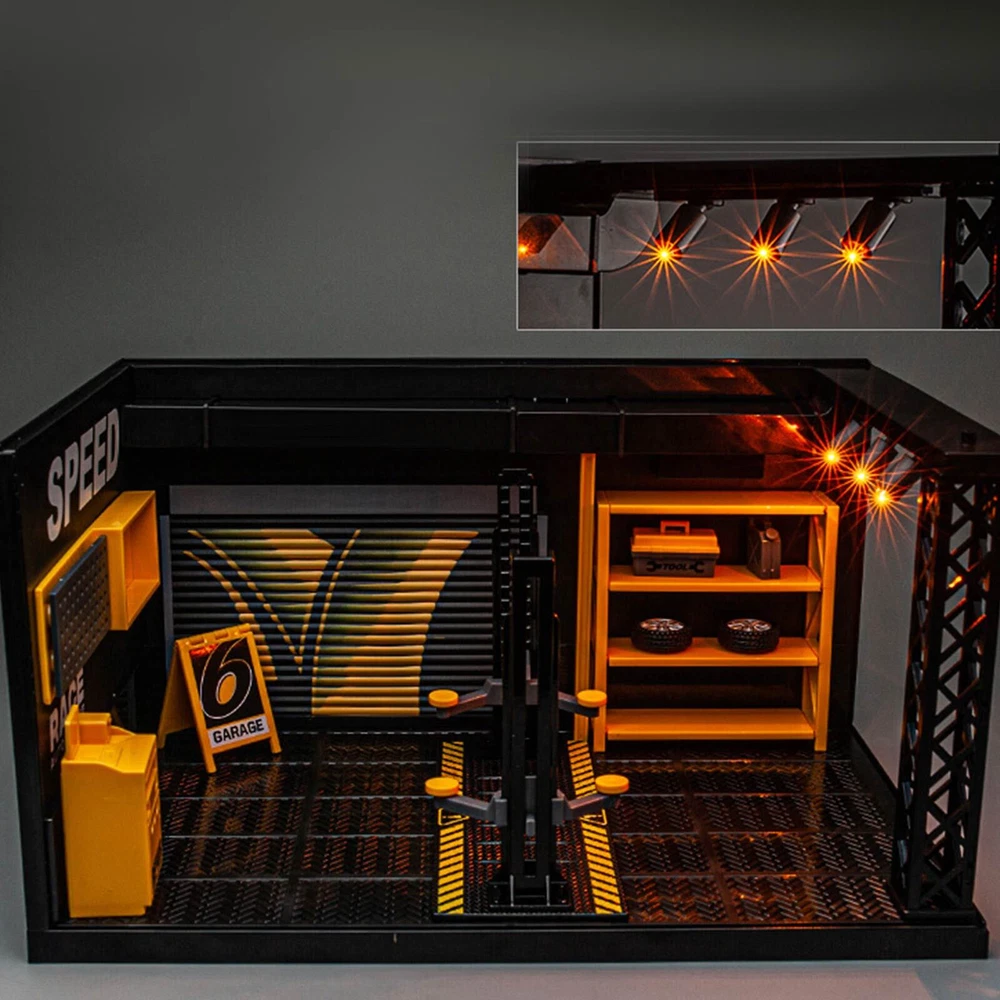 Note: This item is not included car model and figures model,kindly please know it! Product name: 1:24 Simulated DIY Repair Shop Alloy Light MINI Model Diecast Car Toy Garage Scene Decoration Holiday Gift Boys Toys Product material: tire profile alloy+ABS+tire rubber (main material: ABS plastic) Product function: DIY assembly, storage, with light Product color: black Specification after assembly: 27 * 17.3 * 14.5cm Please compare the box dimension with the dimension of action figures or car model before purchase. Thank you.