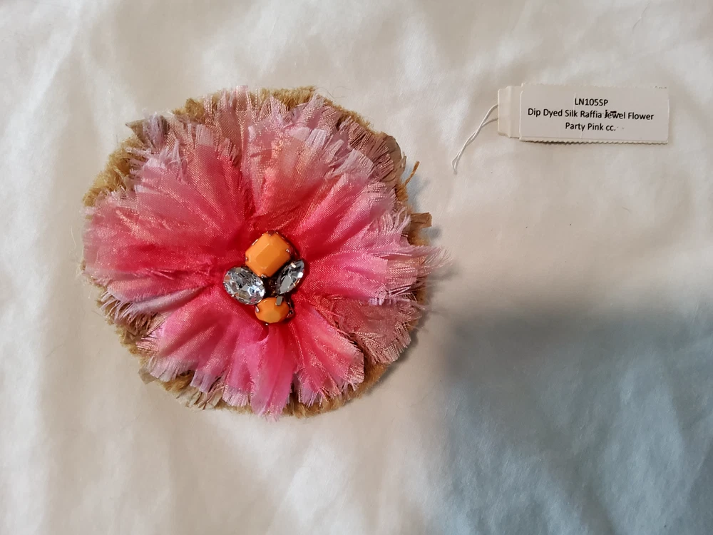 Color:PinkMetal:AluminumMaterial:SilkMain Stone:DiamondMain Stone Color:Imitation DiamondOccasion:Anniversary, Birthday, Christening, Confirmation/Communion, Mother's DayMain Stone Treatment:DyedCountry/Region of Manufacture:UnknownSigned:NoShape:RoundItem Length:9inType:BroochBrand:UnbrandedVintage:NoAntique:No