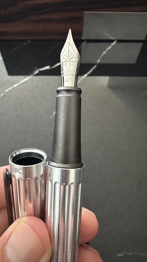 Smooth lines and a streamlined body. Feel the legacy of the Zeppelin and give height to your narratives. Featuring full aluminum casing, anodized surfaces, and grooves on the barrel and cap. The fountain pen comes with a steel nib. The exclusive closing system has a soft sliding click and is the perfect luxury gift for treating yourself or a loved one. - full aluminium casing - anodized surfaces - groove-like depressions on barrel and cap - exclusive closing system with Soft sliding click,