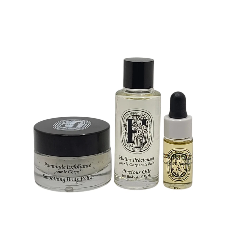 KleverKosmetics Our eBay Store About Us Contact Us Add to Favorite Sellers Diptyque L'Art Du Soin Set Bath Body Precious Oil+Face Oil+Polish *Impefect Box* ** This Diptyque set is Brand New. The box has some slight tears. Please refer to pictures. You will receive what is pictured. ** A three-piece set presented in an ornament-style box that's perfect for giving. Set includes:- Precious Oils for Body and Bath (0.25 oz.): an oil designed to be gently massaged into skin to leave it smoothed, nourished and enhanced, or diluted in the bath to neutralize the effects of hard water and act as a protective emollient- Smoothing Body Polish (0.33 oz.): a polish that gently removes dead skin cells while pomegranate oil and its mild, creamy texture create smooth, soft skin- Infused Face Oil (0.33 oz.): a fast-absorbing, nonoily multi-use oil that contains real rose petals that continually release hydration into the skin. Diptyque L'Art Du Soin SET Bath Body Precious Oil + Face Oil + Polish. Limited Diptyque ** This Diptyque set is Brand New. The box has some slight tears. Please refer to pictures. You will receive what is pictured. ** Return and Refund Information • Please be aware that colors on the screen may appear slightly different in person. • Please be familiar with product. Feel free to contact us if you have any questions. • DUE TO HEALTH AND SANITARY ISSUES CONCERNING COSMETICS OR SKINCARE WE DO NOT ACCEPT RETURNS ON THESE ITEMS. ALL SALES ARE FINAL. • WE WILL ONLY ACCEPT RETURNS WHEN THE ERROR IS ON OUR END. • Attention VeRO members: We're not affiliated with or endorsed by the companies mentioned in this listing. All trademarks and copyrights are acknowledged, they are only used for informative description of the items offered for sale. Warranty information We are not an authorized dealer of this product and any warranty included with the product may not be honored by the manufacturer.