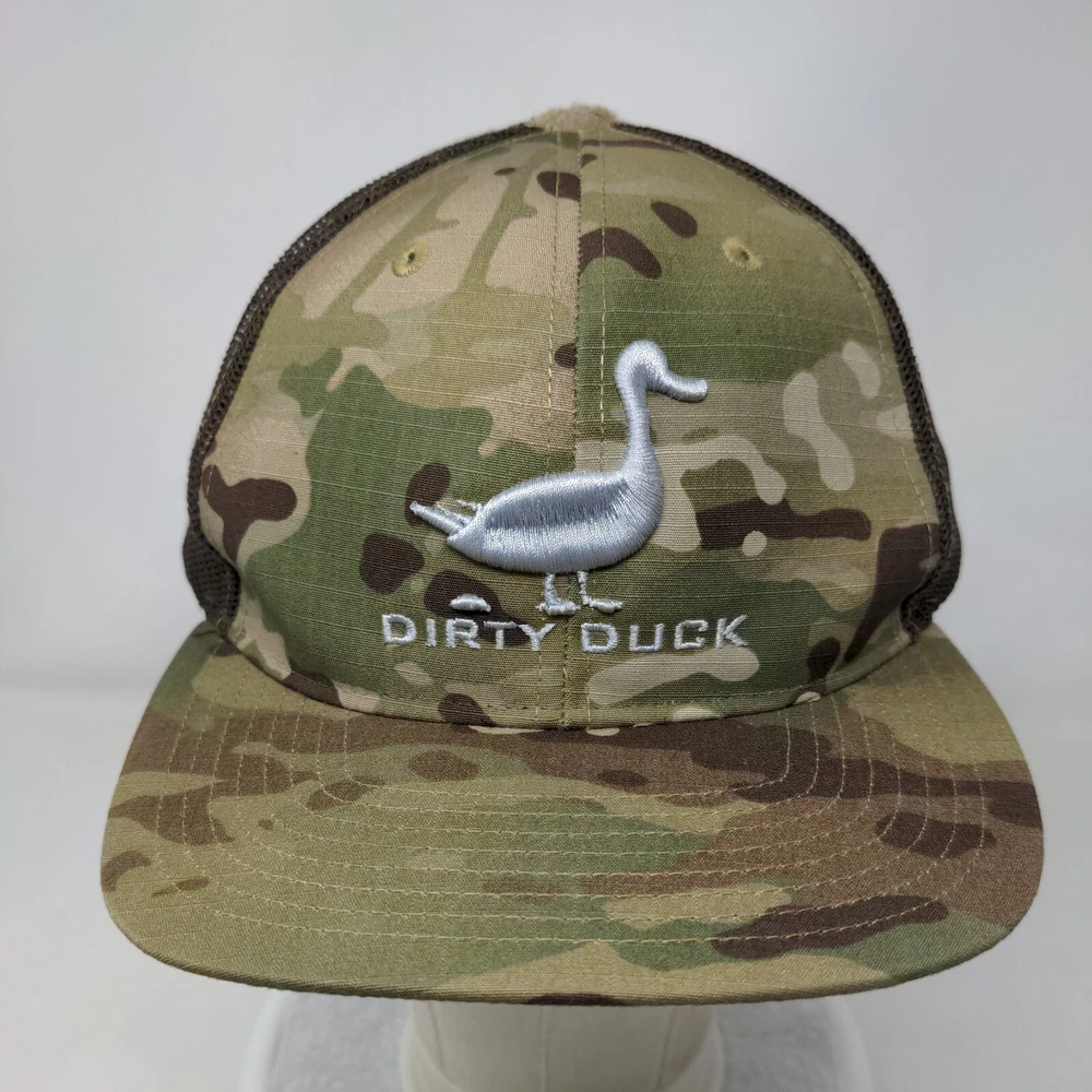 Dirty Duck Snapback Mesh Back Trucker Hat Camouflage One Size 6 Panel Condition: This Richardson Hat has blemishes on the inside. Sold as pictured, thanks for looking! - See Multiple Items You Like? We Can Do Bundle Shipping! -We ship items out EVERY BUSINESS DAY so EXPECT a QUICK delivery! -Please feel free to ask any questions you may have we answer most questions instantly! -Thank you for supporting Hat Authority! 5-1.11