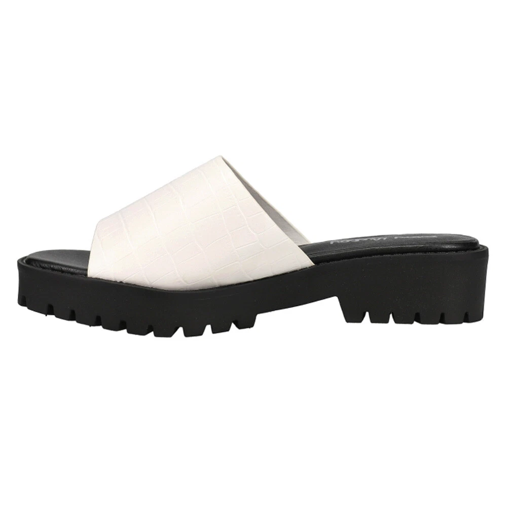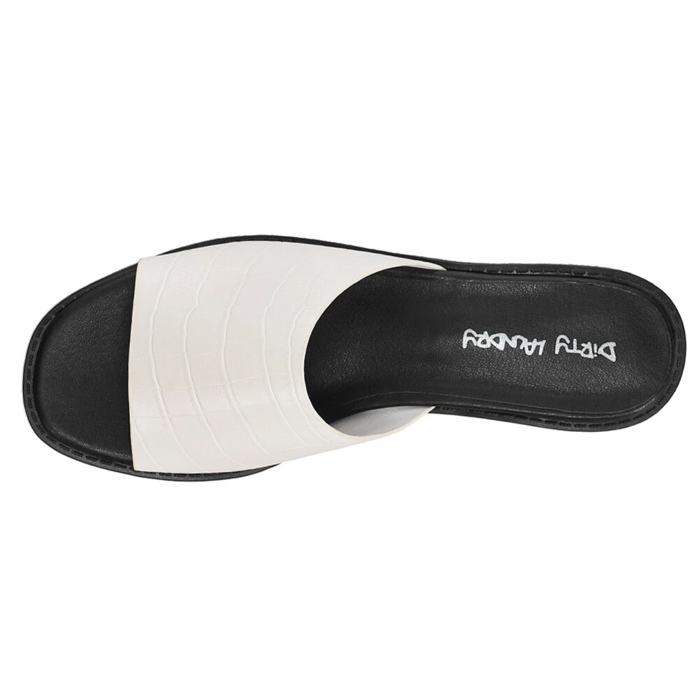 Respect Croc Platform Sandals Product Details Synthetic upper Slip on entry Lightly padded footbed Durable rubber outsole 1.5 inch heel height Dirty Laundry's Respect Sandals are the perfect go with anything slip ons! The added bonus of a heel makes them dress up any outfit and give it a little edge. Featuring a synthetic croc upper, lightly padded footbed, and 1.5 inch heel. Additional Details Color: White Occasion: Casual Gender: Womens Age: Adult Brand: Dirty Laundry