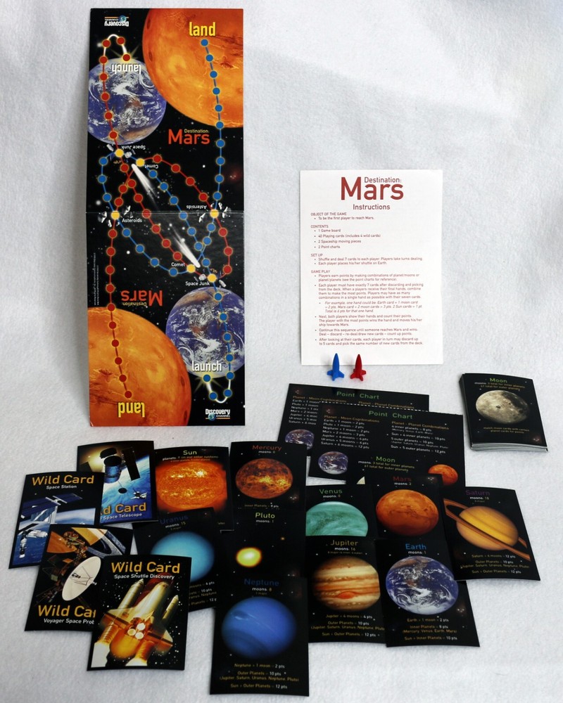Explore the solar system and conquer the planets with DESTINATION: MARS - A Strategy Game. This complete game by University Games is perfect for two players only , ages 8 and up, who love strategy and space exploration. The game was released in 1999. The game includes a game board, playing pieces, cards, and instructions to make it easy to start playing right away. The players will take on the role of space explorers and will to compete in order to achieve their goal of landing on Mars. With its unique theme and challenging gameplay, DESTINATION: MARS is a must-have for any game enthusiast. Each item we ship is carefully packaged to prevent any damage and is shipped immediately with tracking.